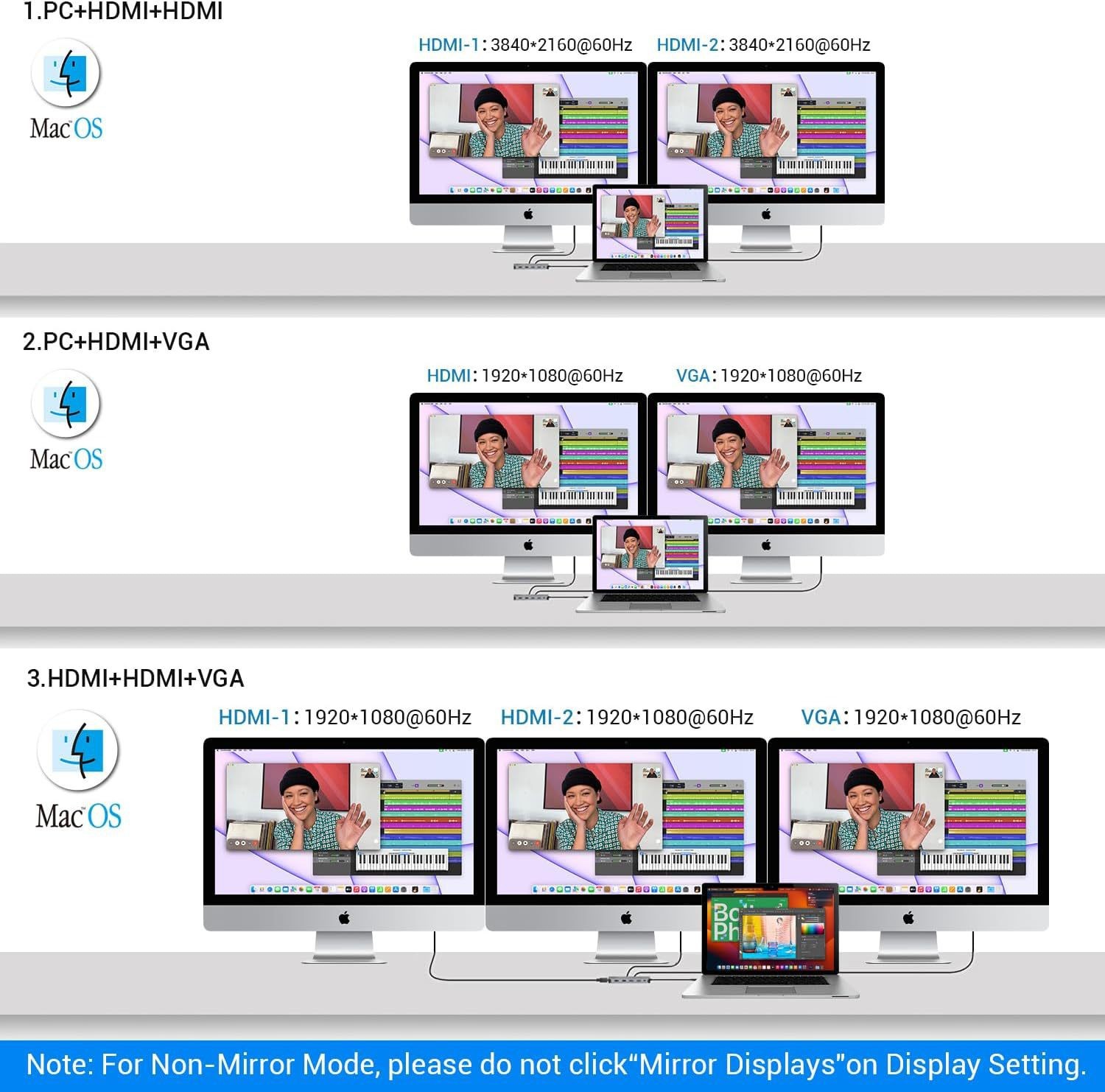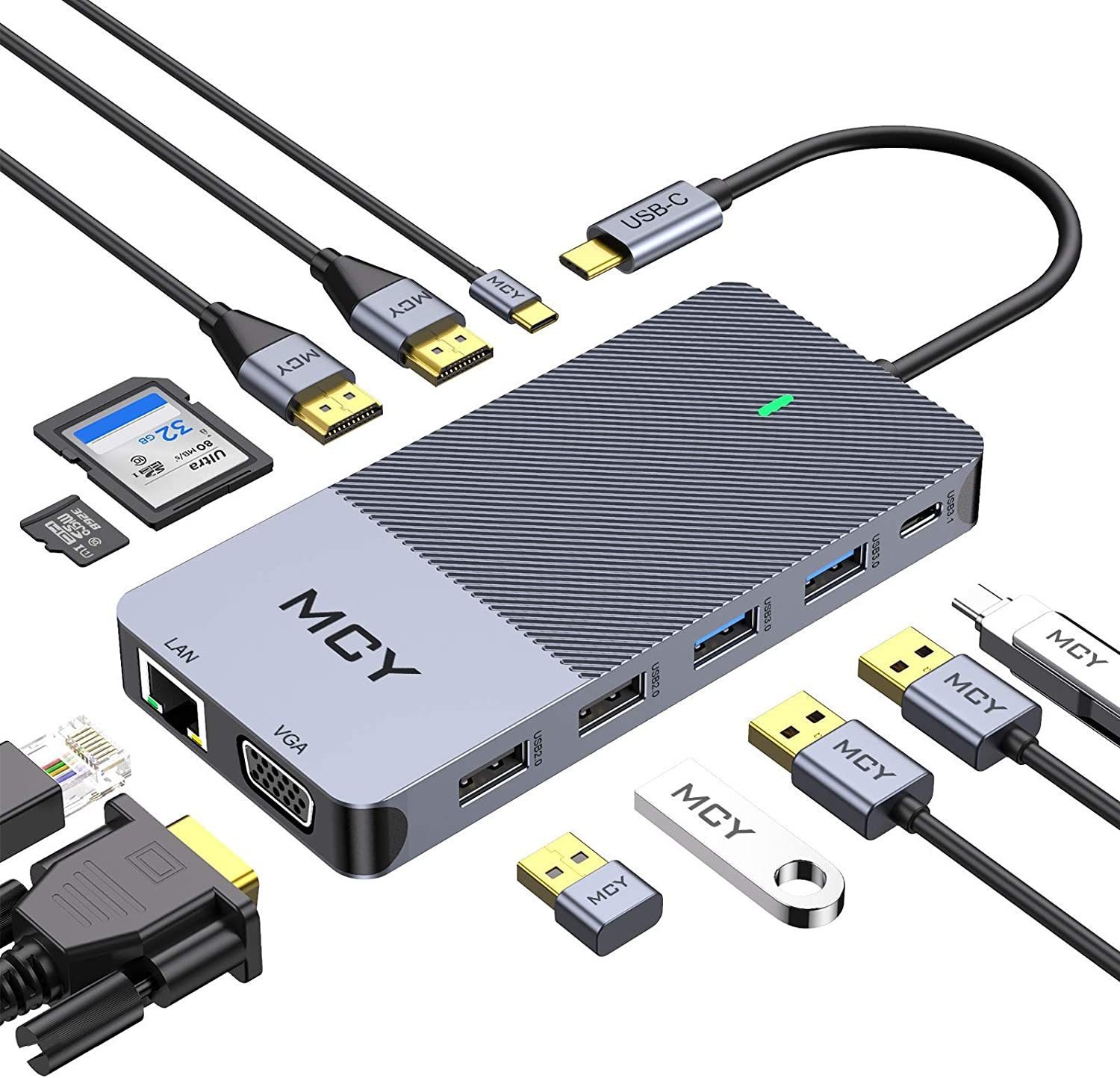 12 in -1type-c 도킹 스테이션 3 화면 디스플레이 USBC 허브 듀얼 HDMI 기가비트 포트 USB 컨버터 허브
