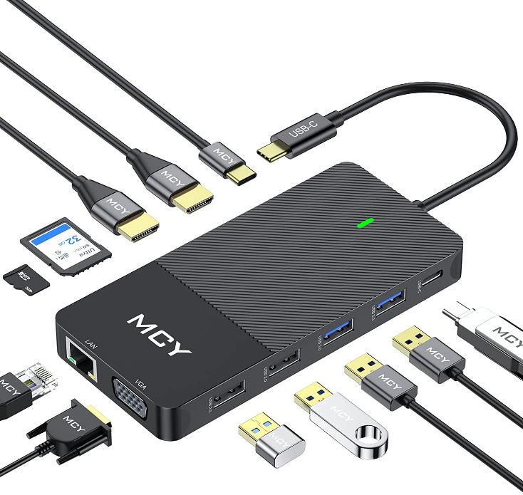 12 in -1type-c 도킹 스테이션 3 화면 디스플레이 USBC 허브 듀얼 HDMI 기가비트 포트 USB 컨버터 허브스토어 가기