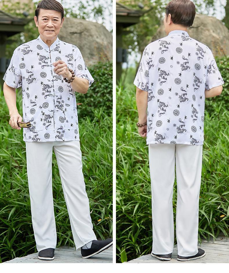 당나라 세트 남성 중년 아버지 여름 세트 할아버지 여름 반팔 노인 옷 중국 스타일 70 세