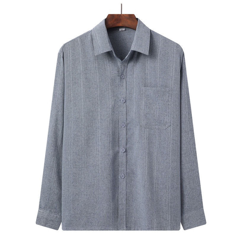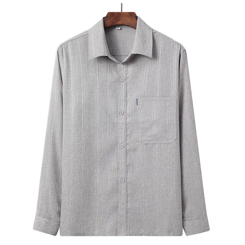 노인의 셔츠 주름-저항하는 남성 노인의 긴 소매 아버지의 플러스 사이즈 느슨한 단색 늙은 남자의 봄과 가을 착용스토어 가기