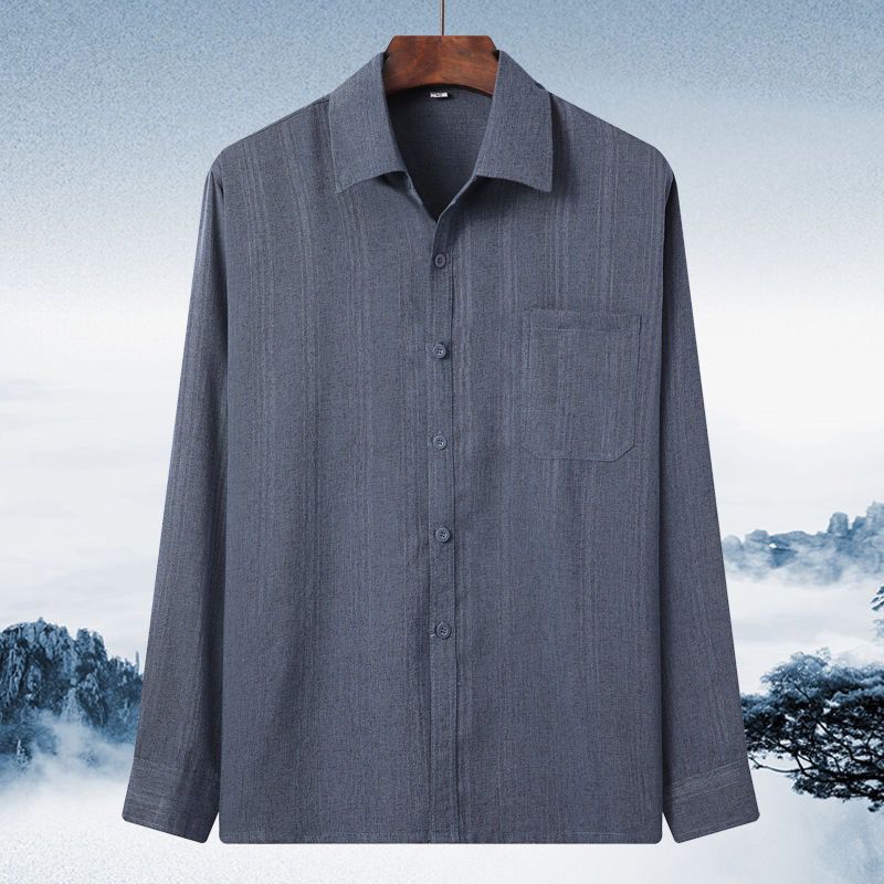 노인의 셔츠 주름-저항하는 남성 노인의 긴 소매 아버지의 플러스 사이즈 느슨한 단색 늙은 남자의 봄과 가을 착용