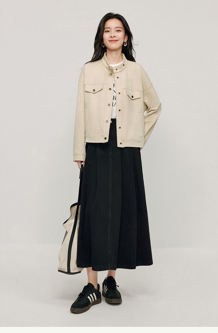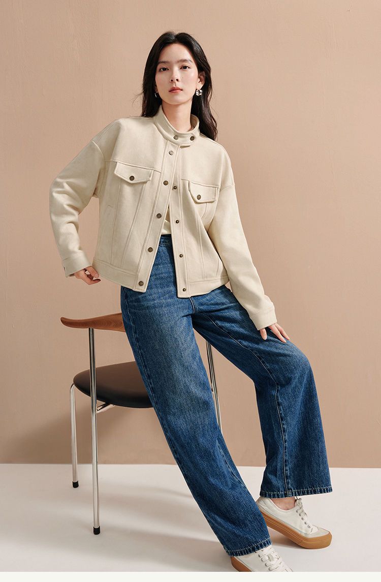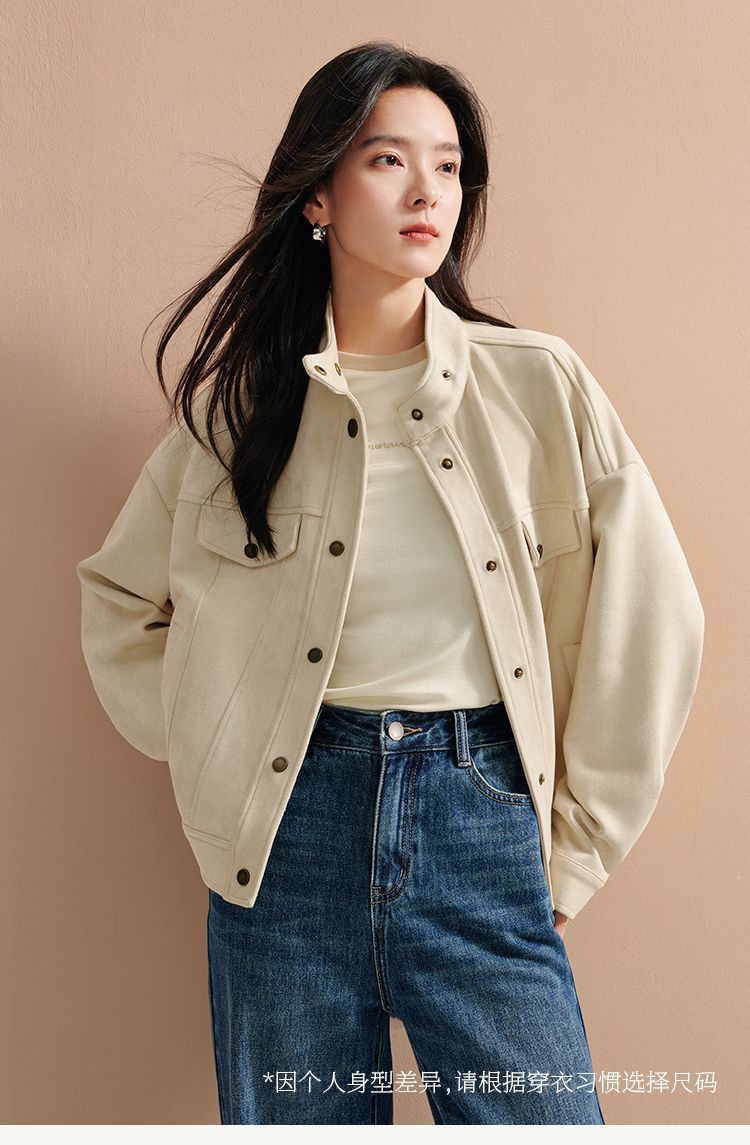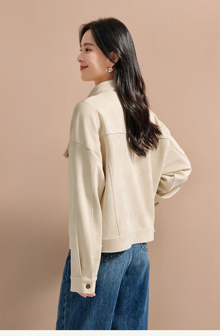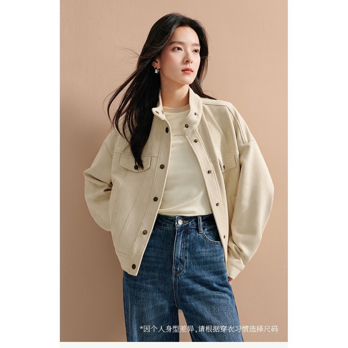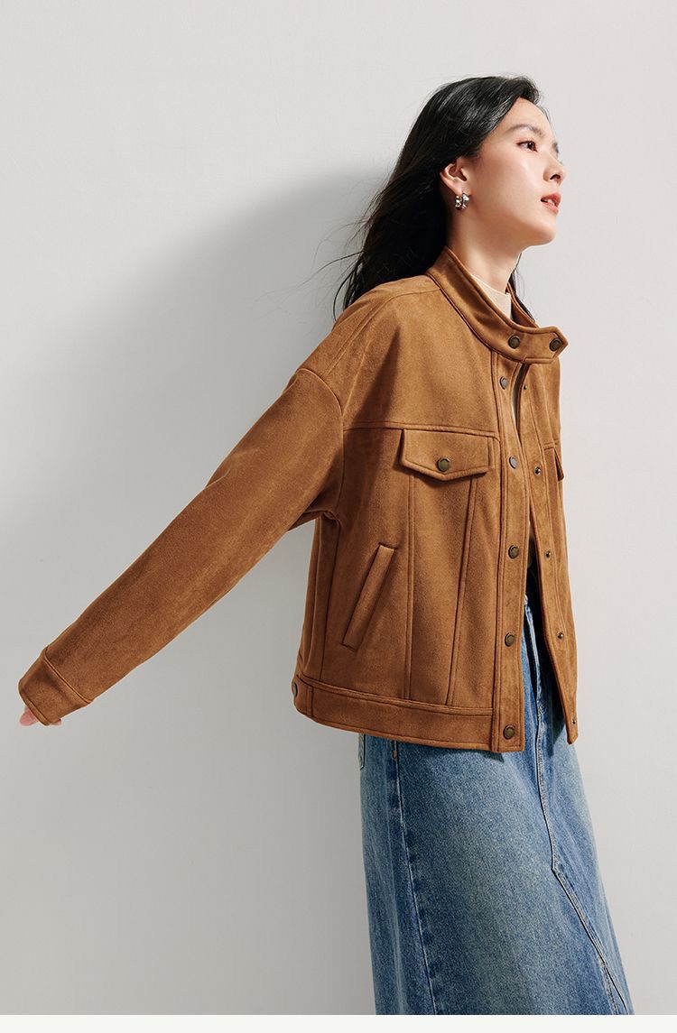 스웨이드 캐주얼 쇼트 코트 여성의 봄과 가을 2024 새로운 우아한 복고철 스탠드 칼라 재킷 탑