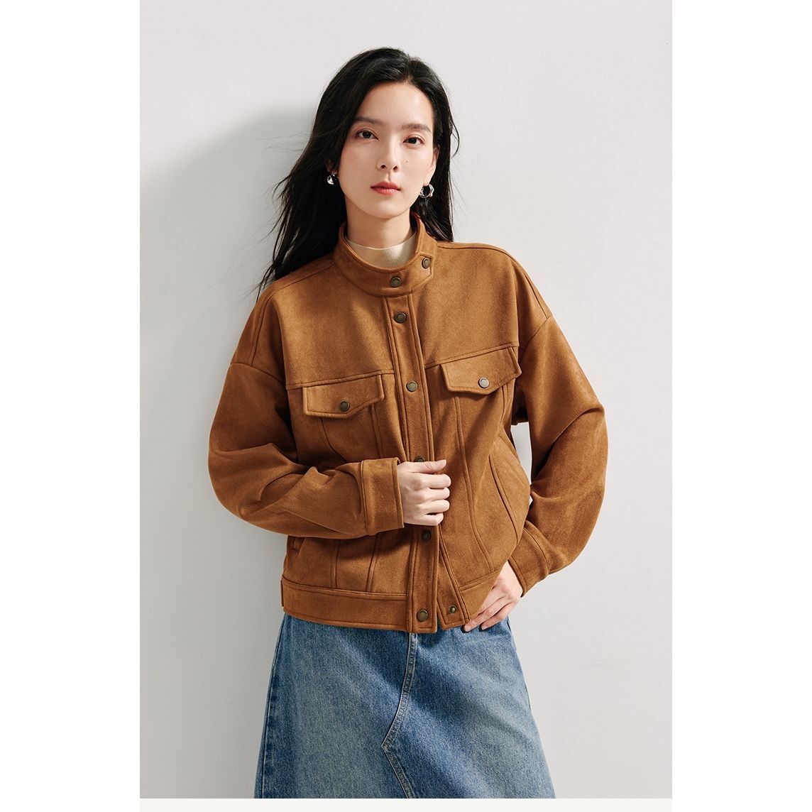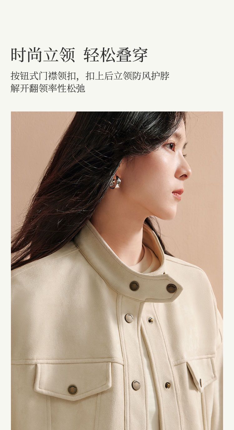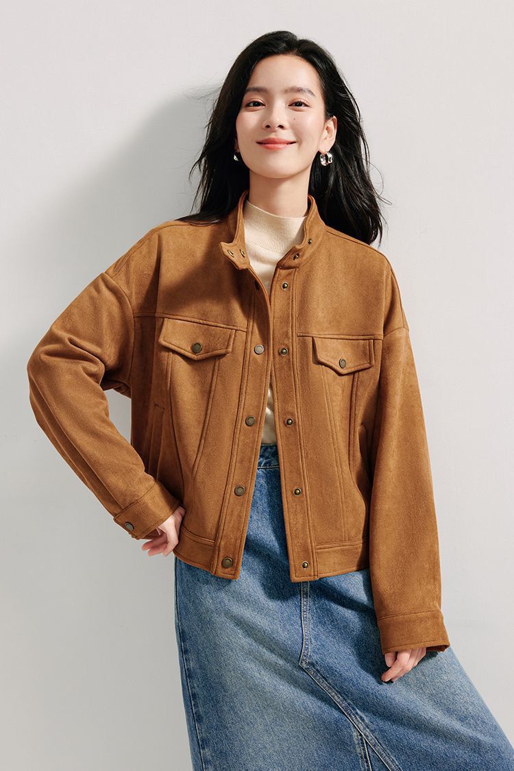 스웨이드 캐주얼 쇼트 코트 여성의 봄과 가을 2024 새로운 우아한 복고철 스탠드 칼라 재킷 탑스토어 가기