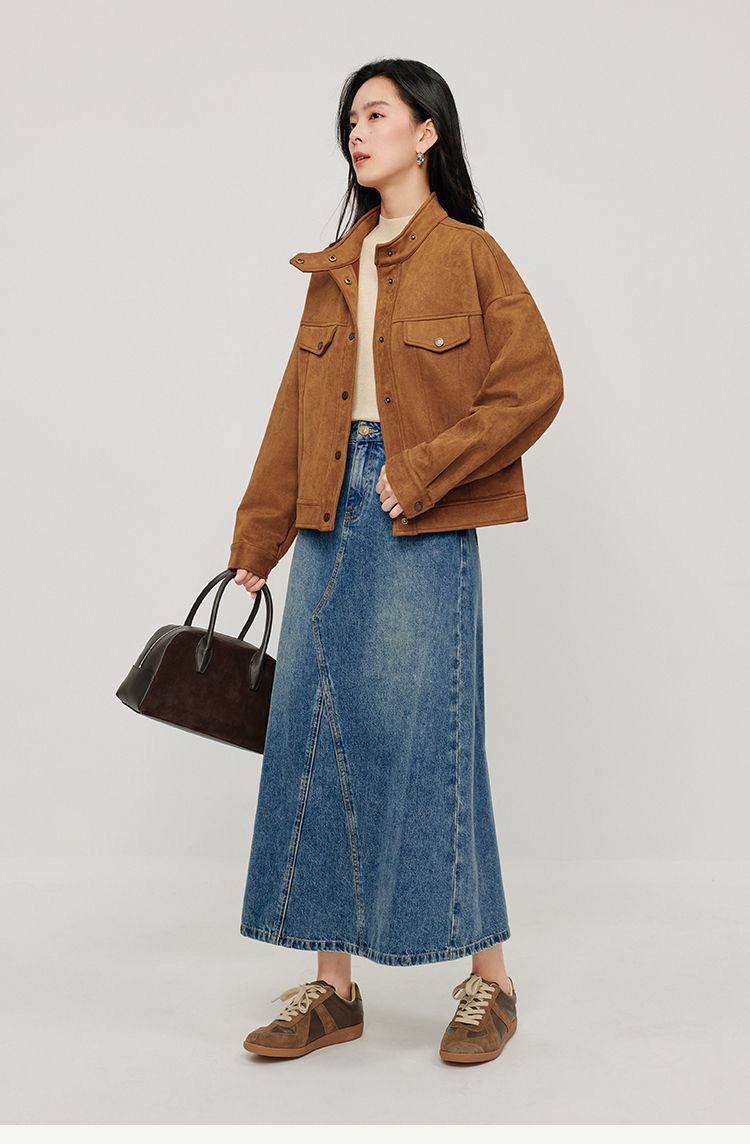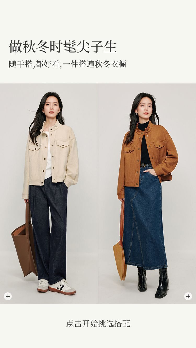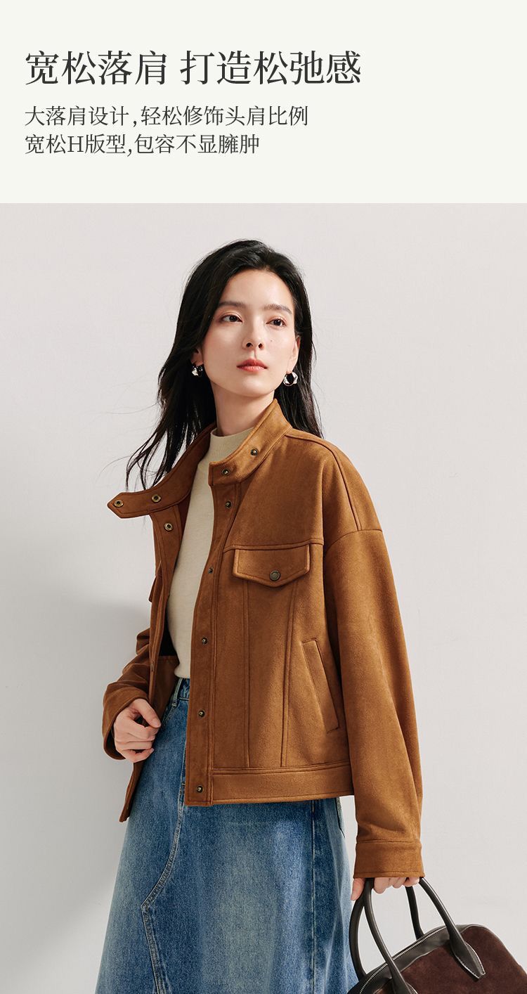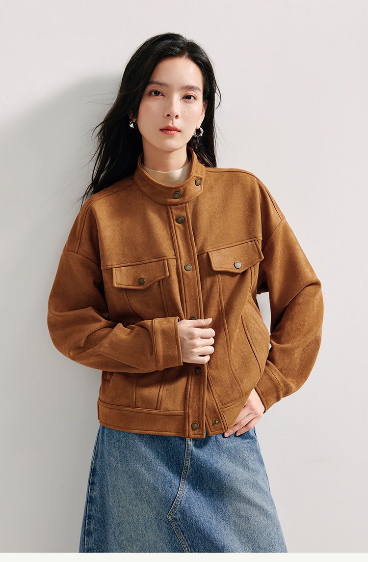 스웨이드 캐주얼 쇼트 코트 여성의 봄과 가을 2024 새로운 우아한 복고철 스탠드 칼라 재킷 탑스토어 가기