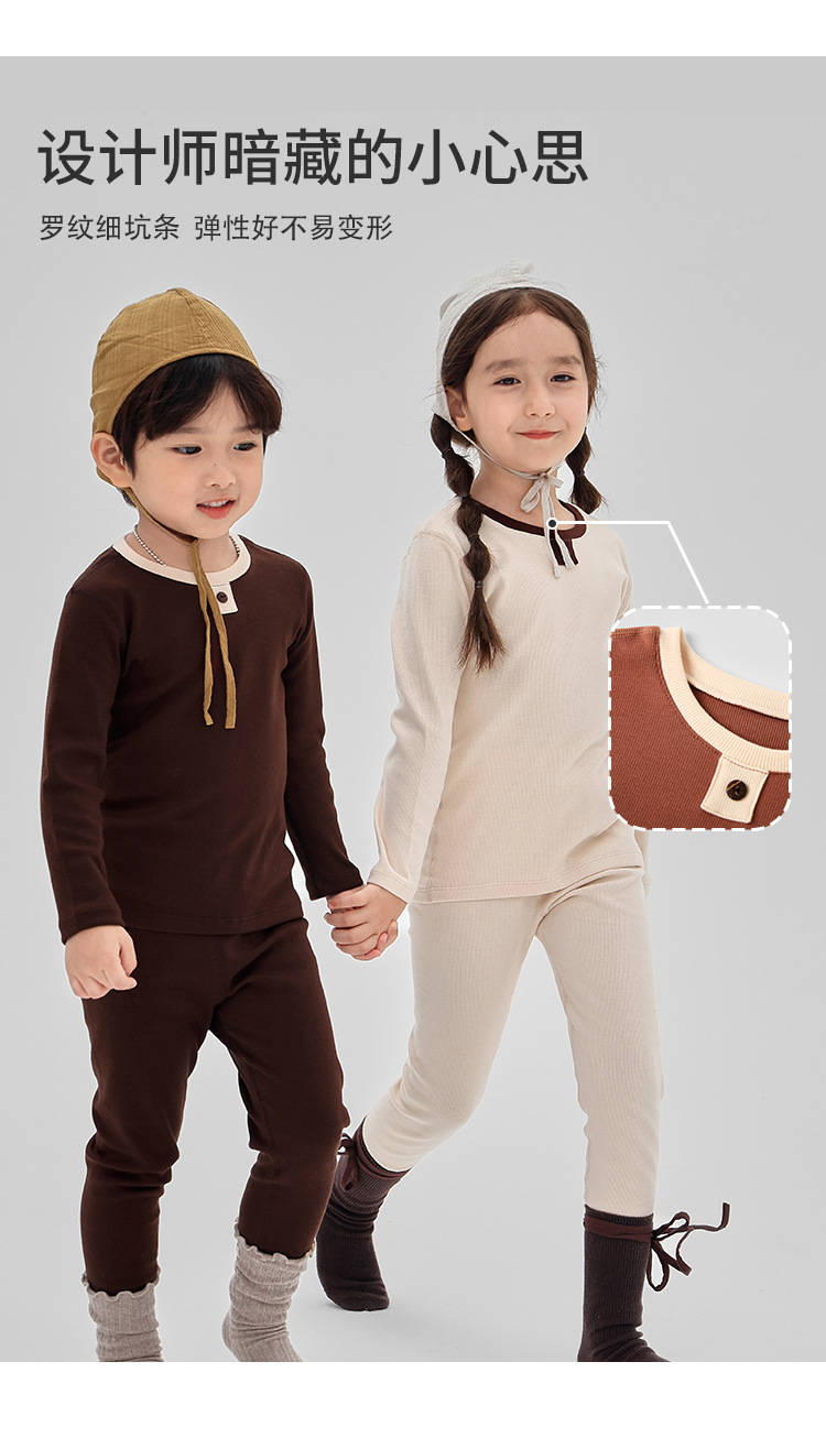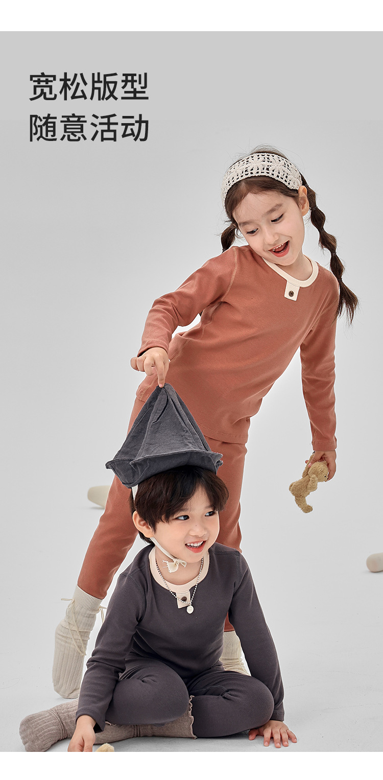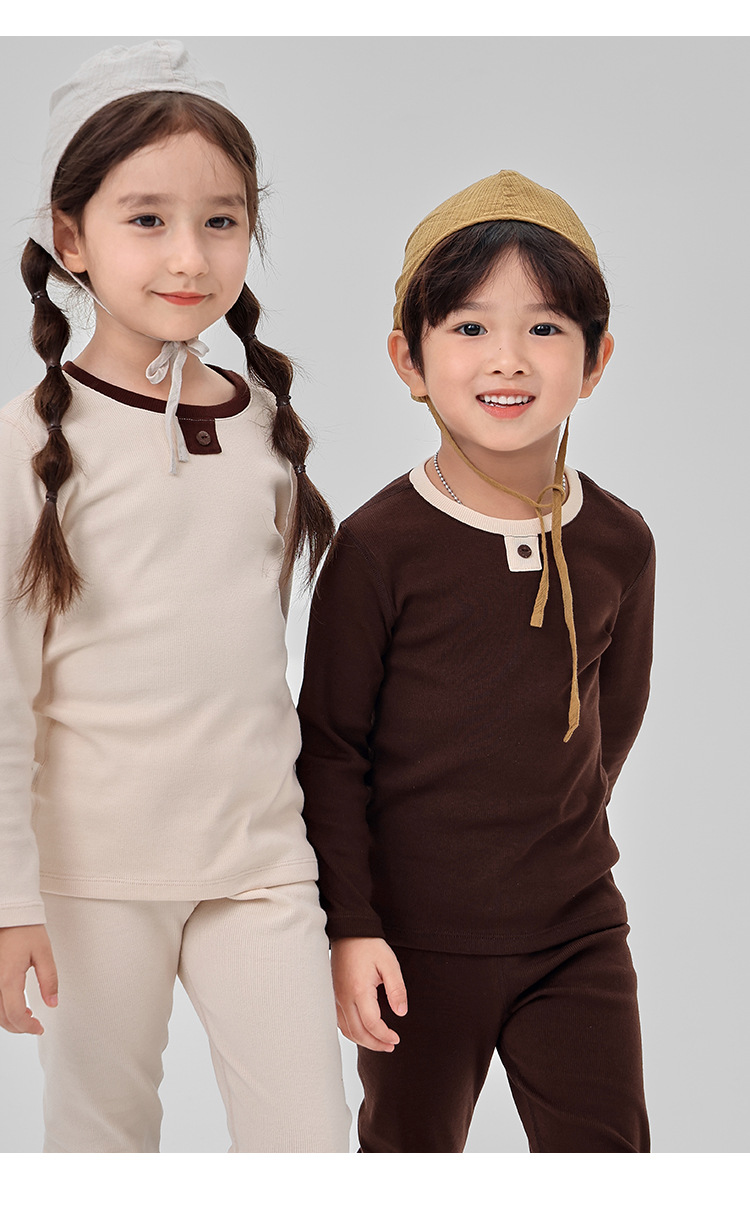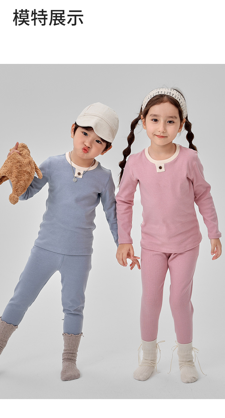 ZYZ 어린이 홈 의류 가을 및 겨울 파인 핏 버튼 어린이 가을 옷과 바지 세트 단색 뼈없는 어린이 잠옷스토어 가기