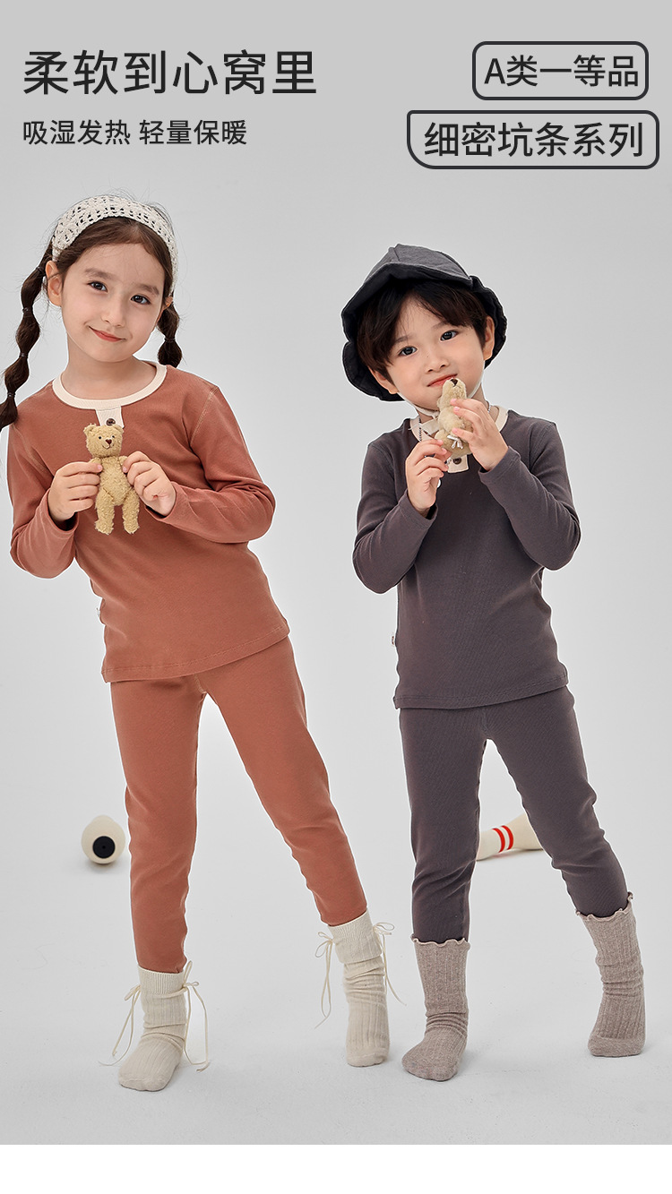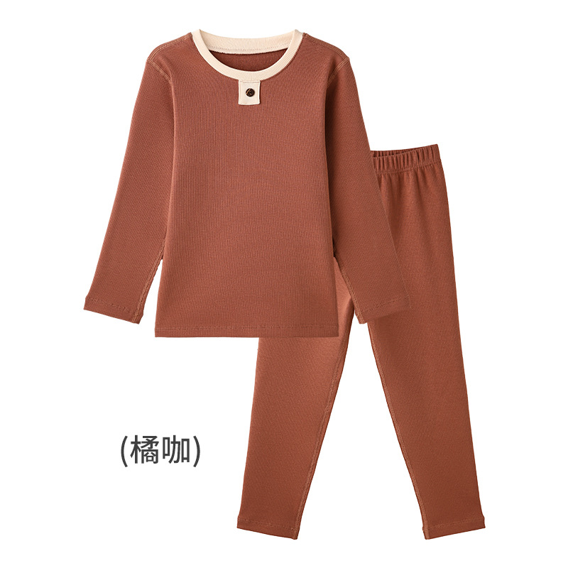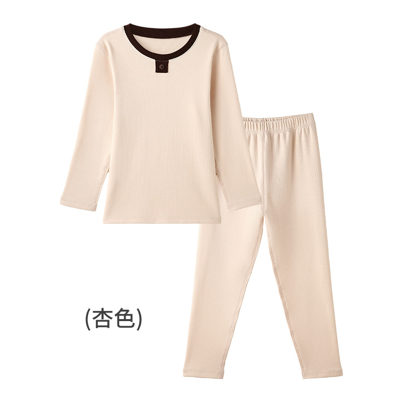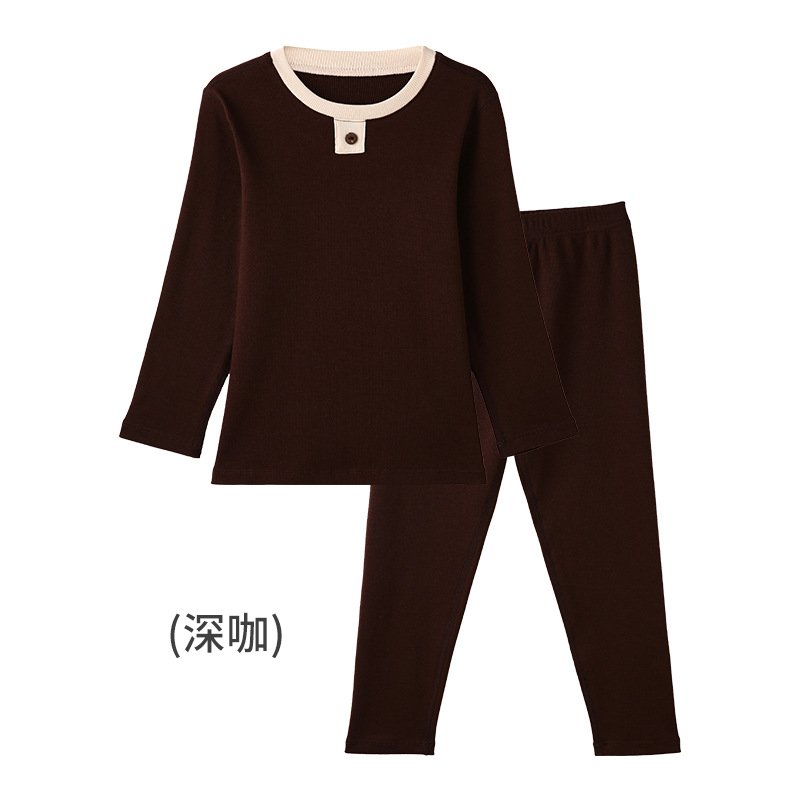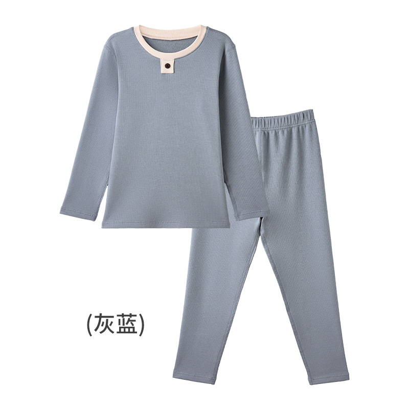 ZYZ 어린이 홈 의류 가을 및 겨울 파인 핏 버튼 어린이 가을 옷과 바지 세트 단색 뼈없는 어린이 잠옷