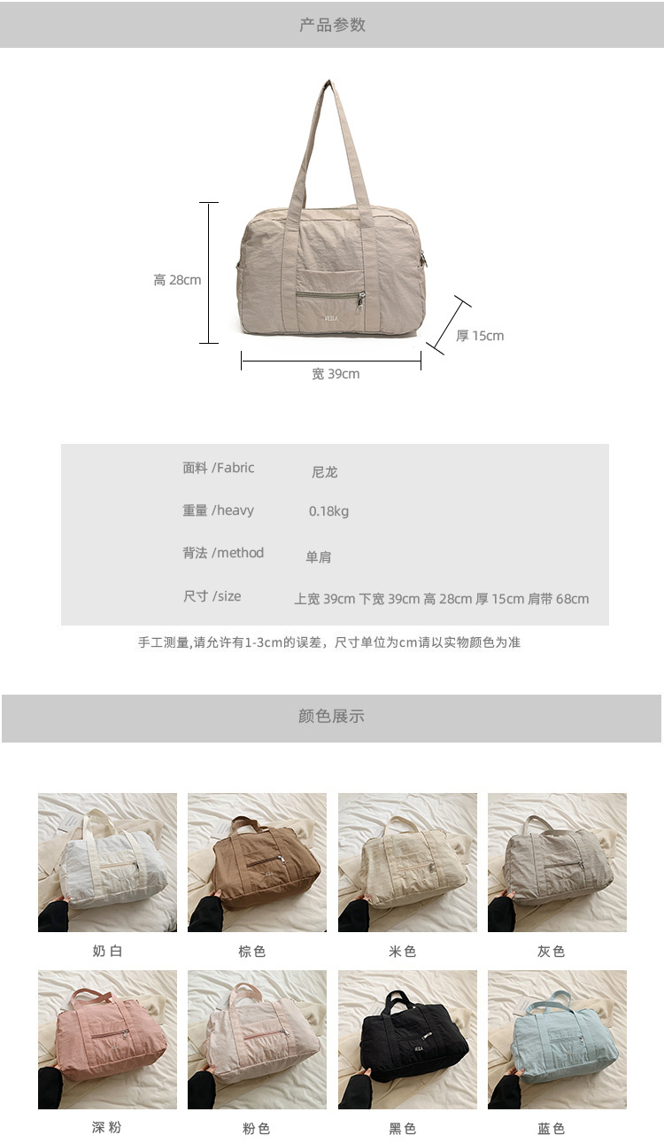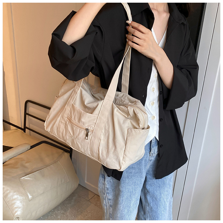 여행 가방 새로운 간단한 단색 작업복 스타일 가방 여성 스포츠 및 레저 어깨 가방 남성 대용량 학생 핸드백