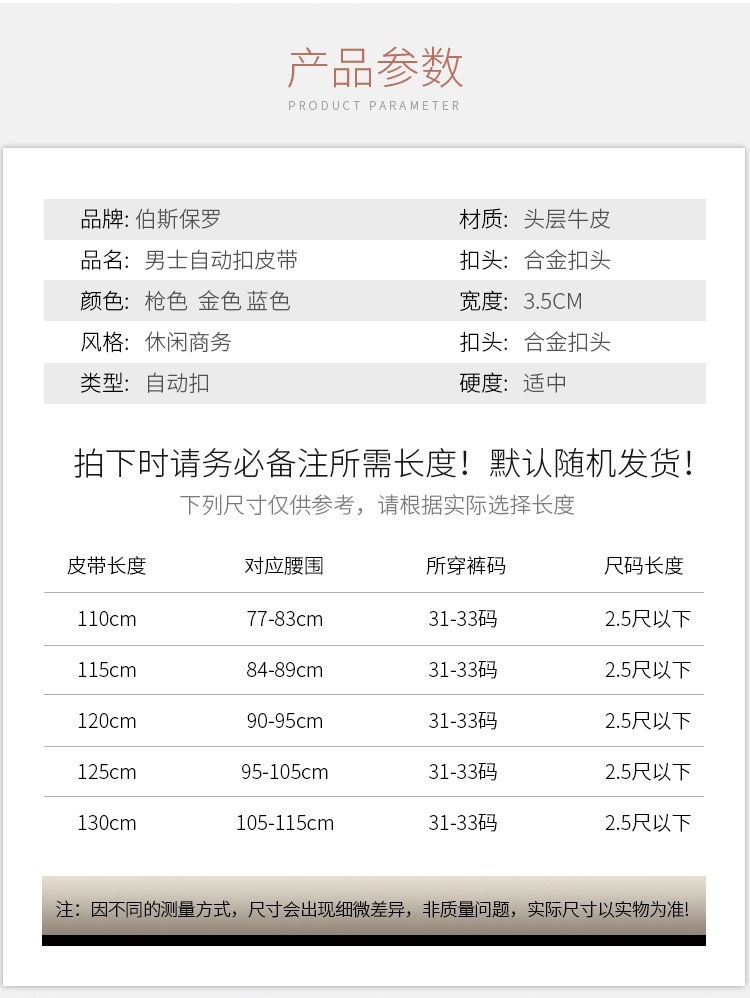폴 벨트 남성 자동 버클 벨트 브랜드 트렌디 패션 남성 심플 비즈니스 천연 가죽 벨트 도매스토어 가기