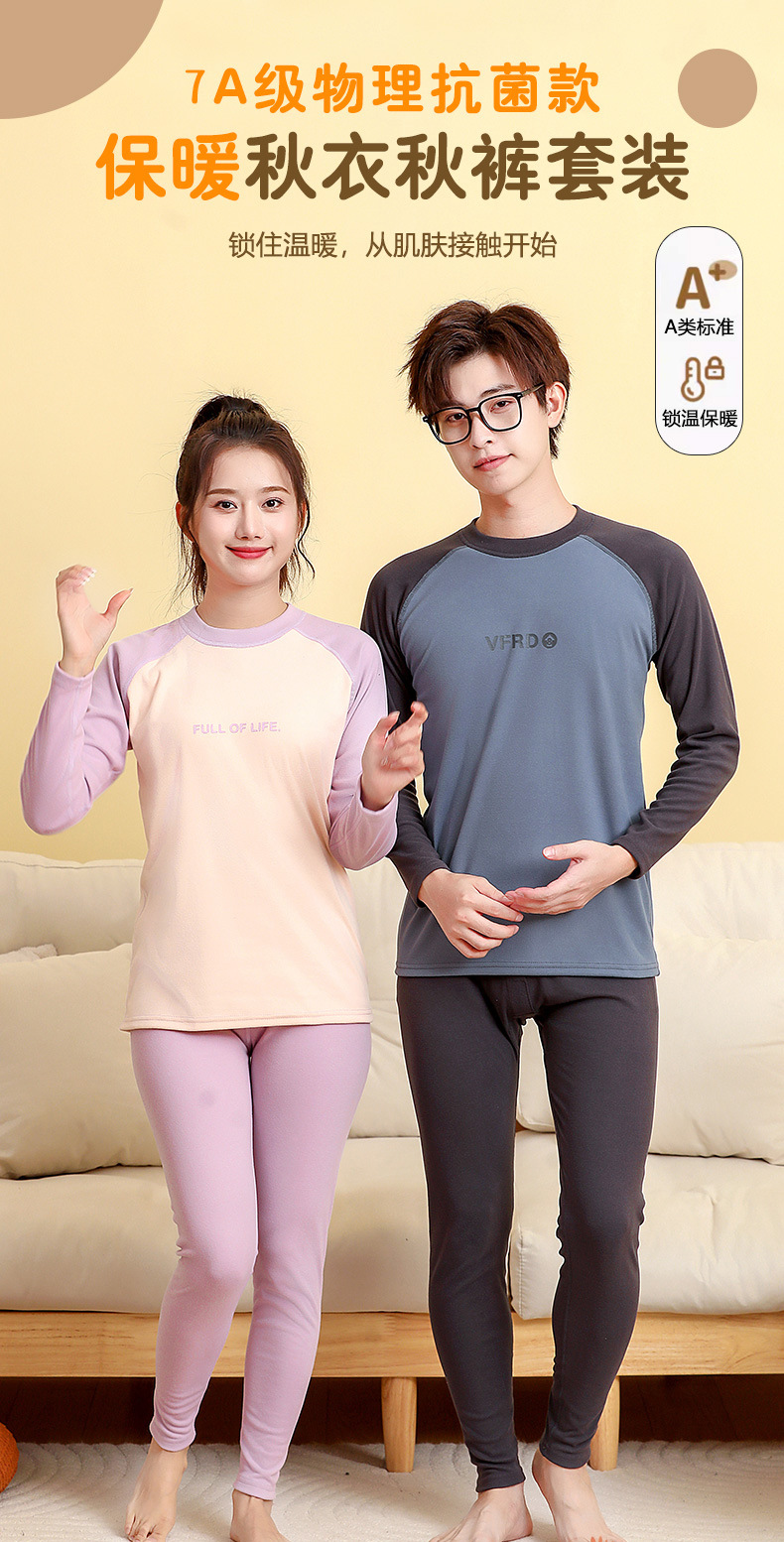 가을과 겨울 새로운 청소년 생강 따뜻한 벨벳 항균 열 속옷 세트 큰 소년 소녀 승무원 두꺼운 홈 옷