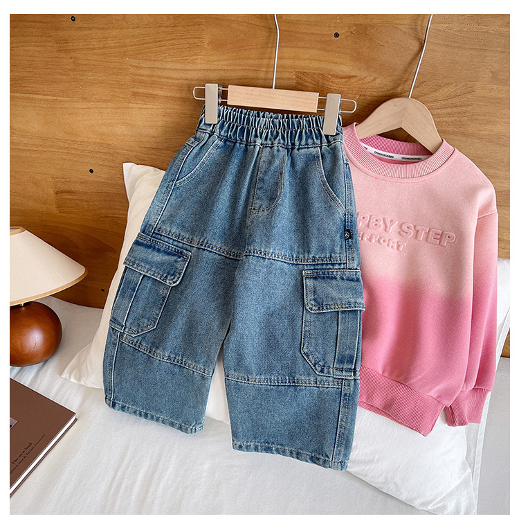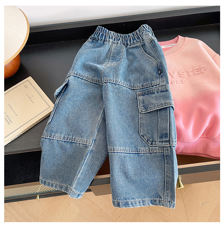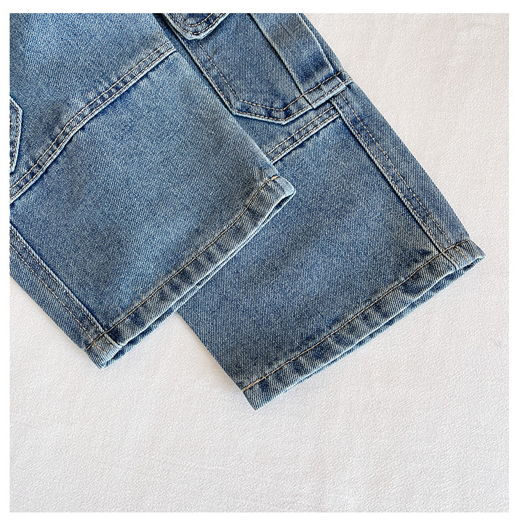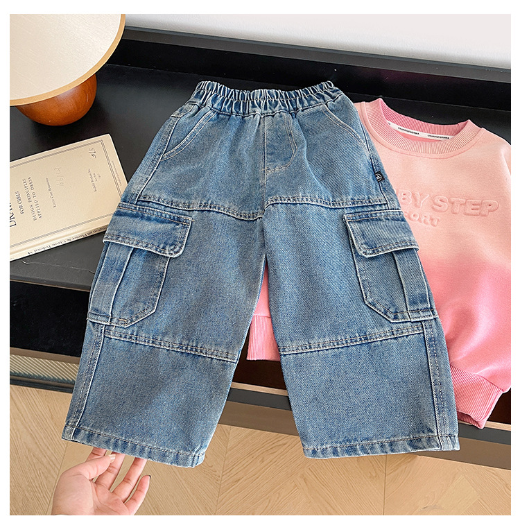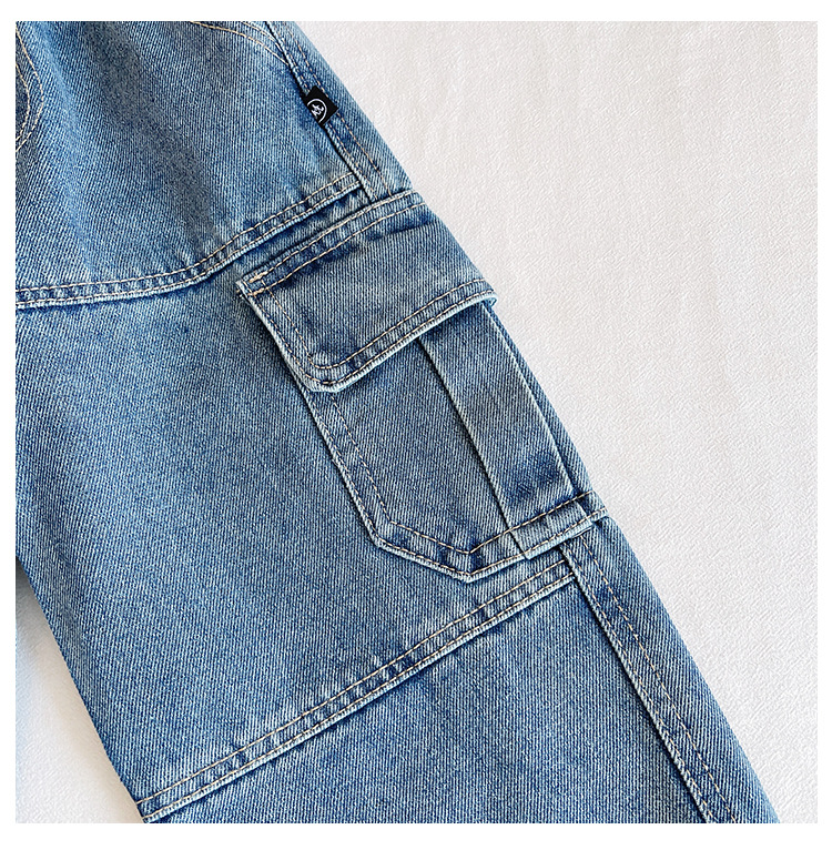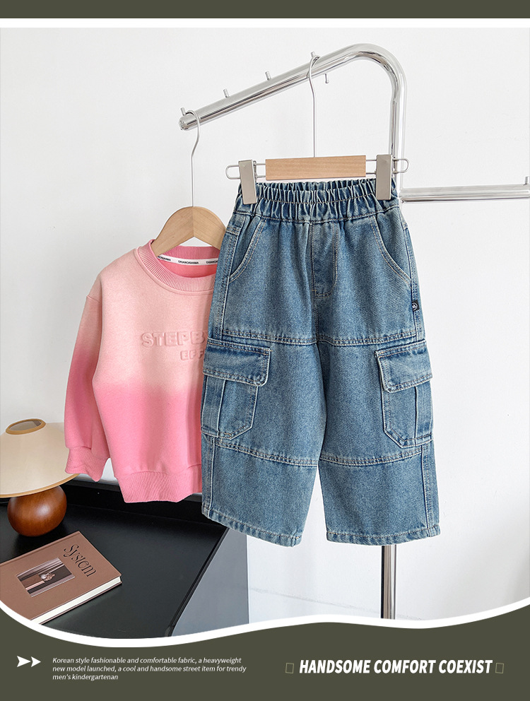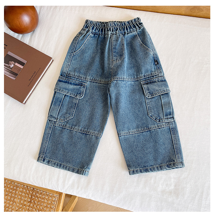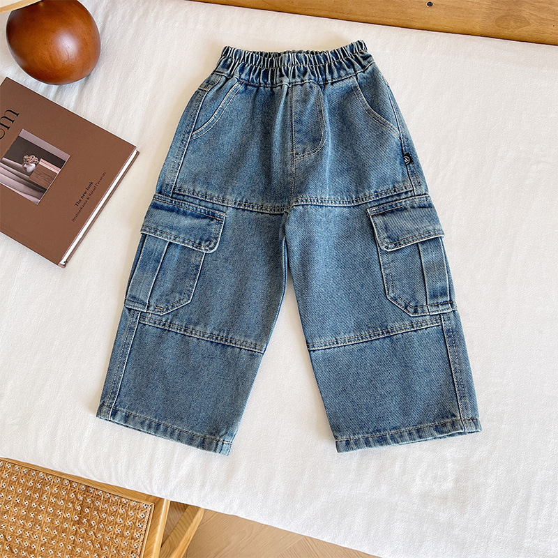 윈드 밸리 2024 가을 새 어린이 바지 한국 스타일 맞춤형 대형 포켓 툴링 청바지 소년 스트레이트 다리 바지스토어 가기