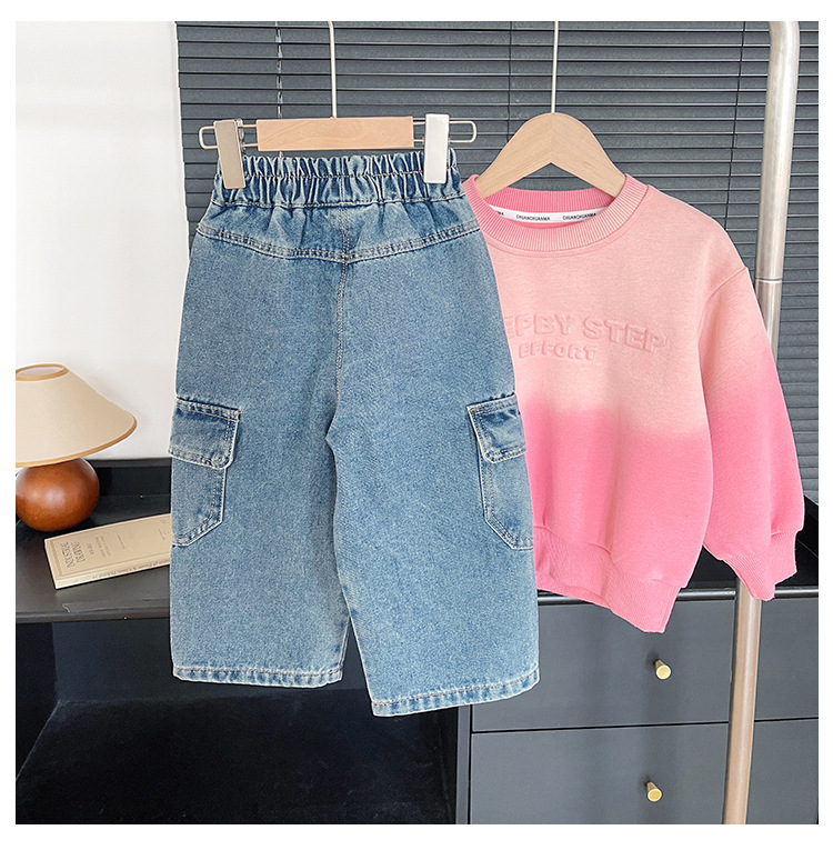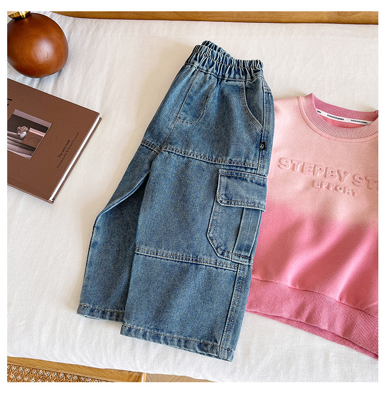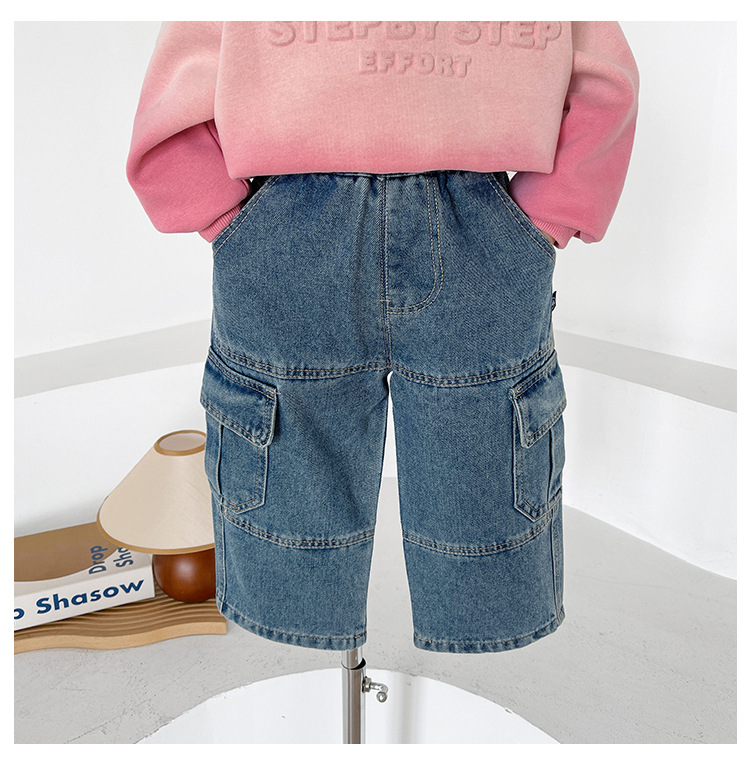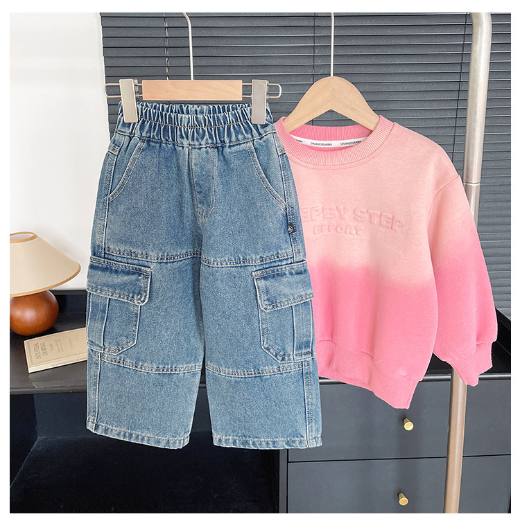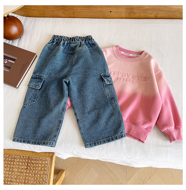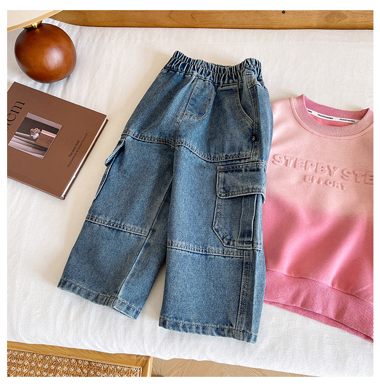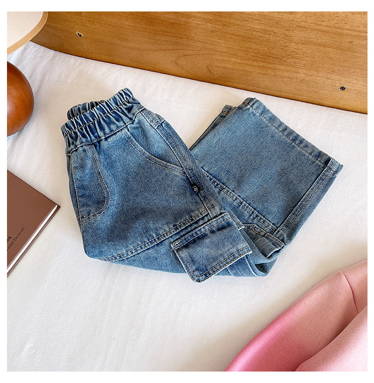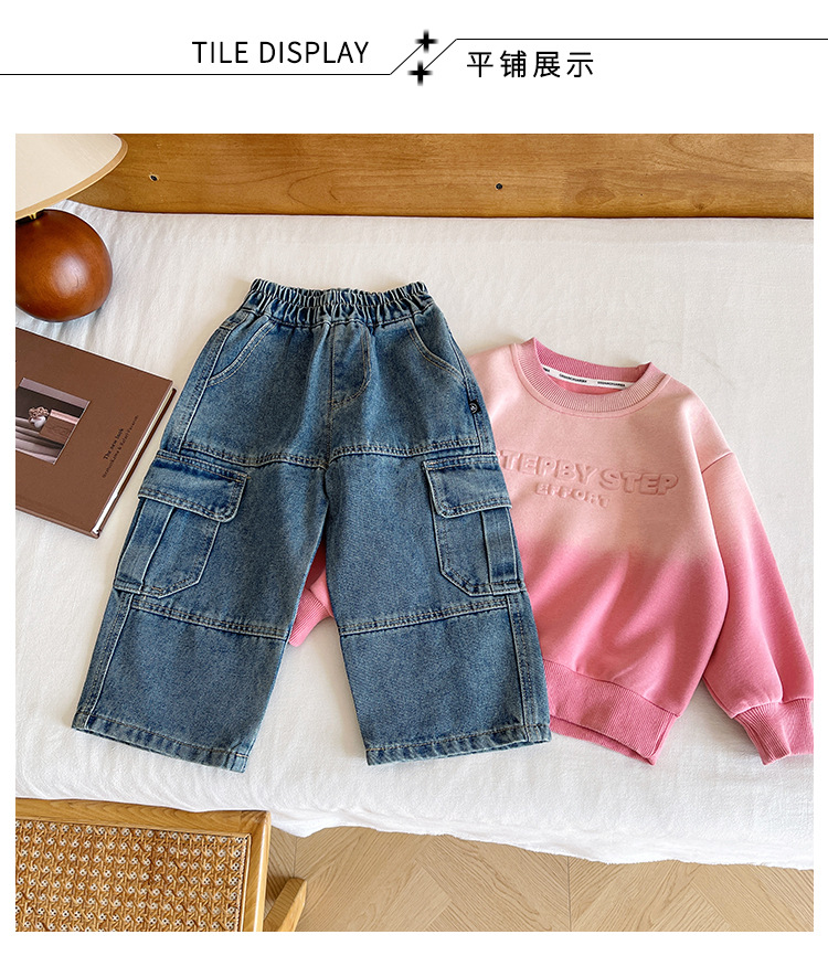 윈드 밸리 2024 가을 새 어린이 바지 한국 스타일 맞춤형 대형 포켓 툴링 청바지 소년 스트레이트 다리 바지스토어 가기