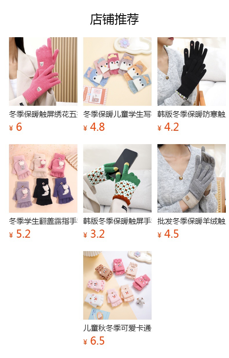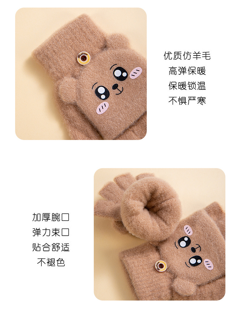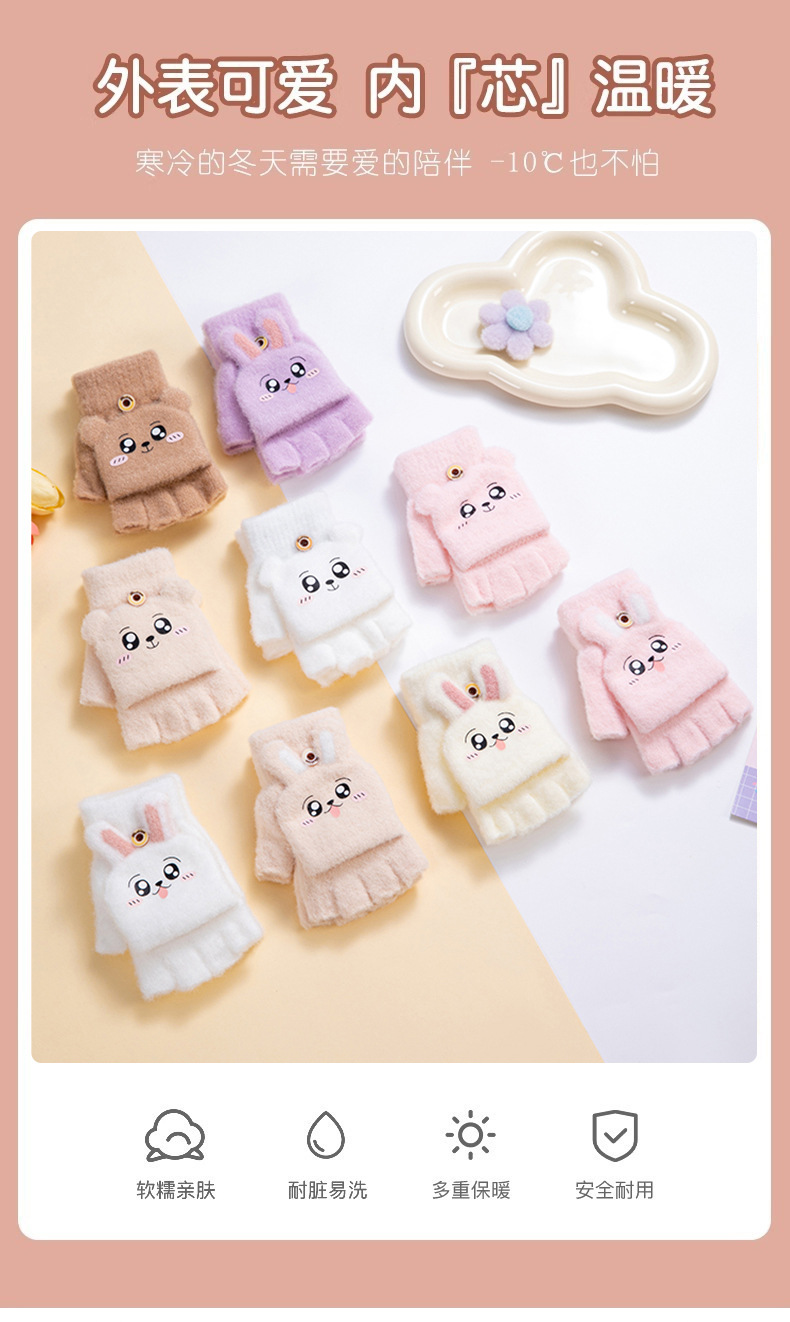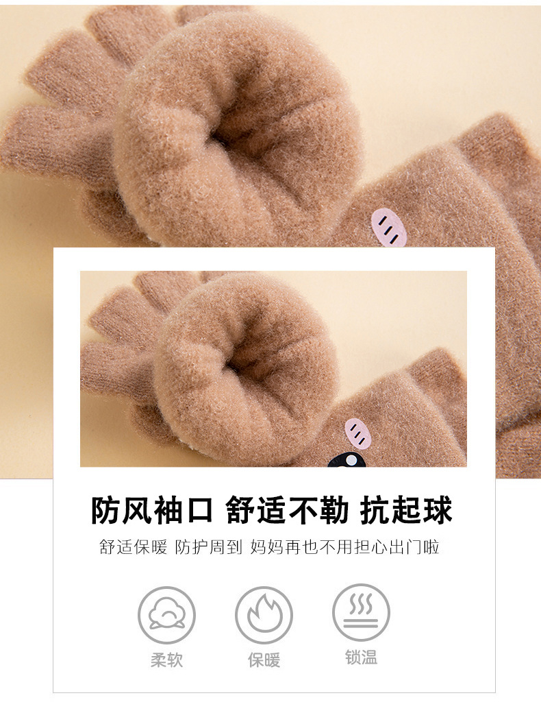 儿童保暖可爱毛绒半指翻盖手套。材质锦纶、水晶纱线材料