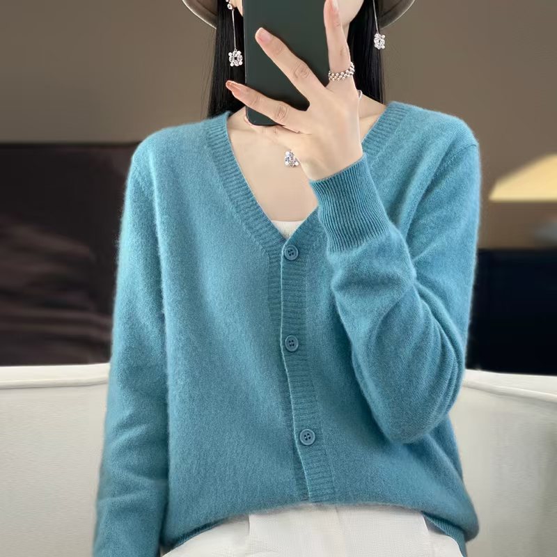 봄과 가을 새로운 V 넥 스웨터 여성 코트 느슨한 스웨터 외부 단순 올 매치 얇은 탑