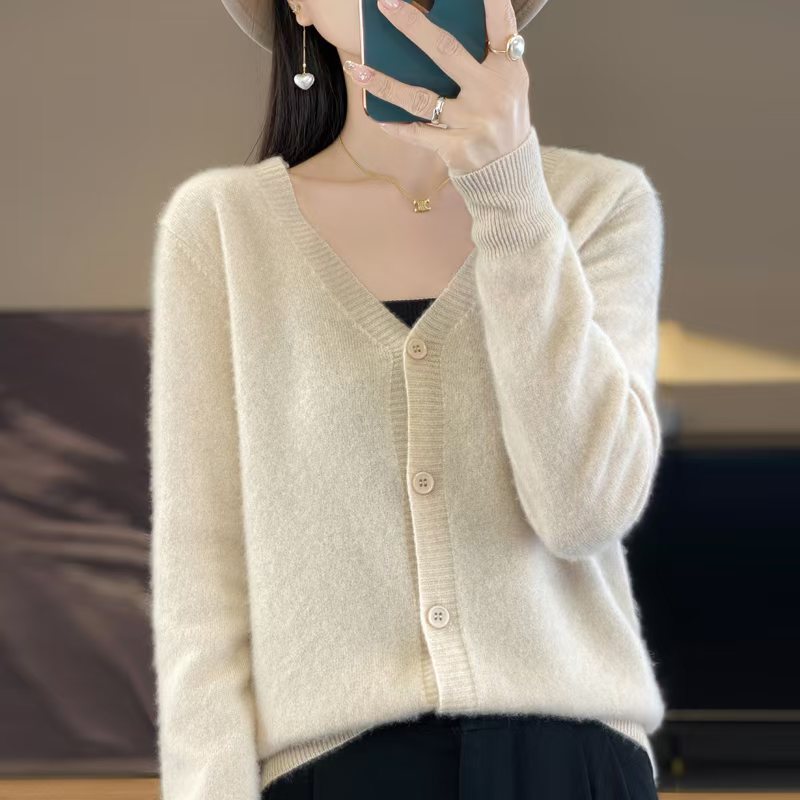 봄과 가을 새로운 V 넥 스웨터 여성 코트 느슨한 스웨터 외부 단순 올 매치 얇은 탑스토어 가기