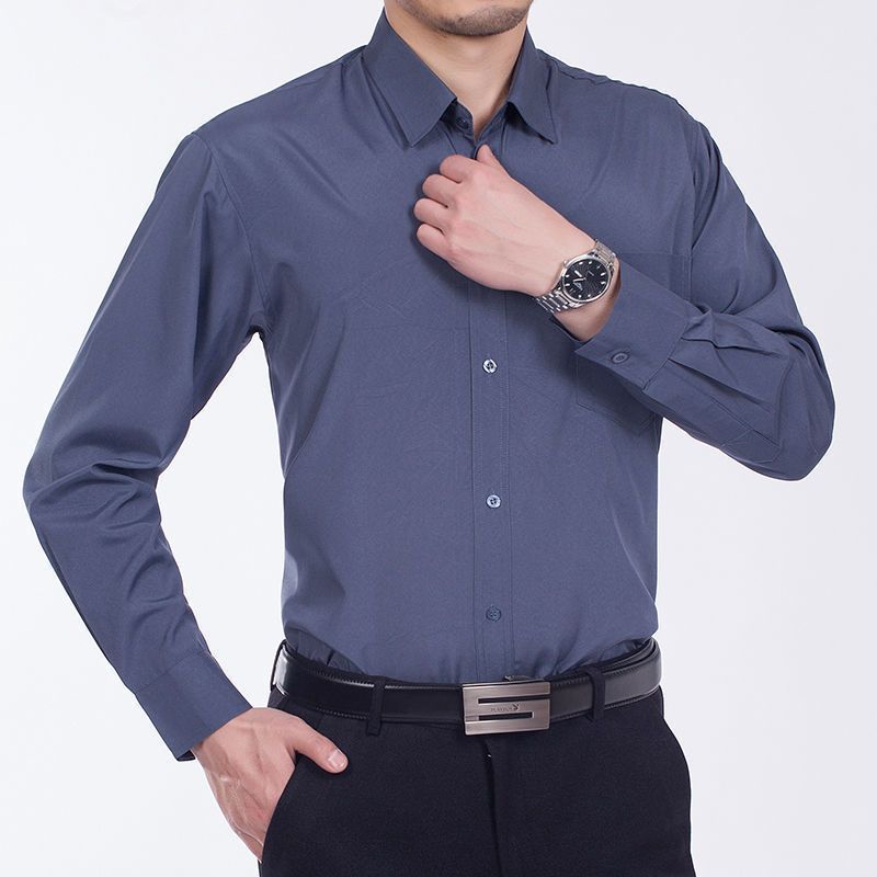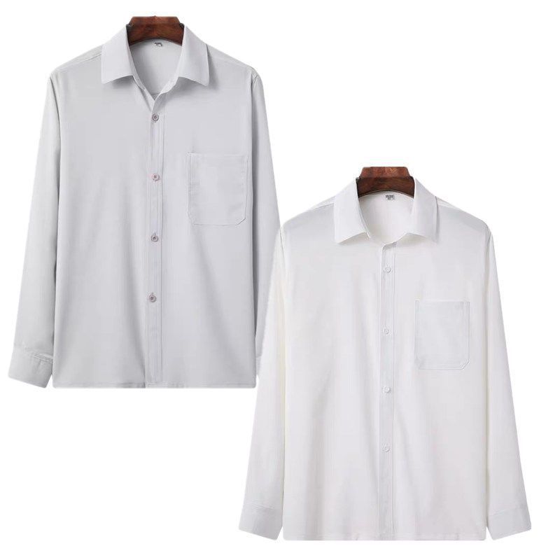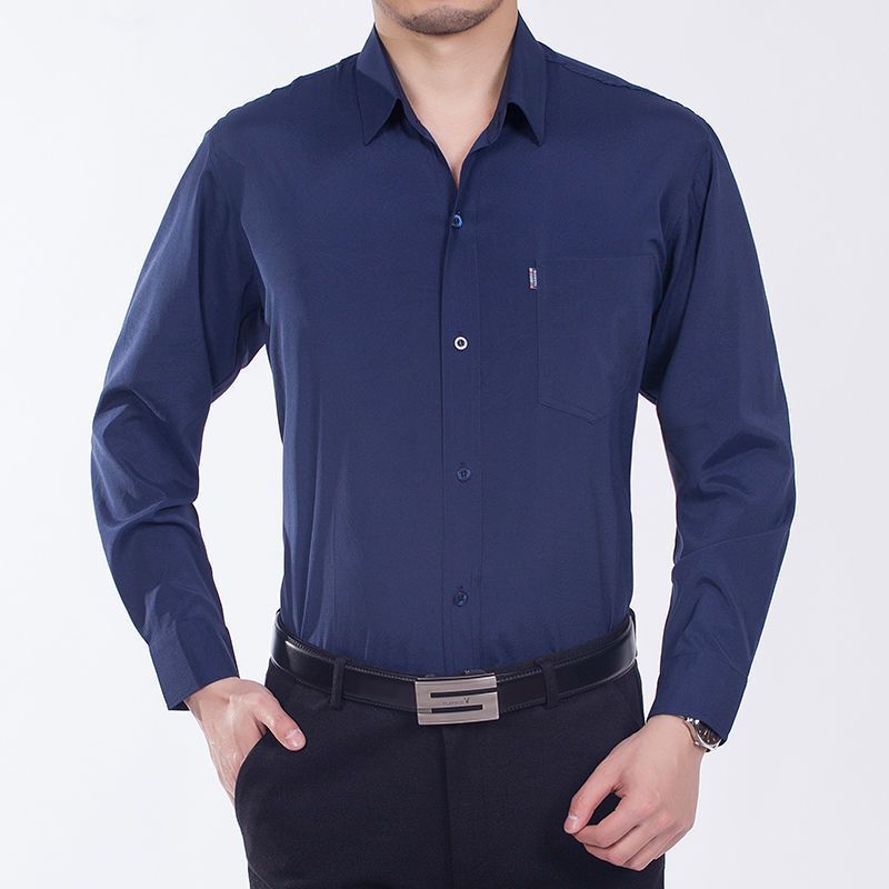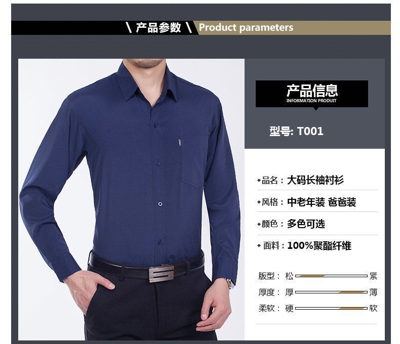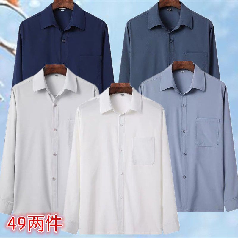 중년 및 노인 단색 아빠 옷 셔츠 캐주얼 얇은 할아버지 플러스 사이즈 탑을위한 봄과 여름 남성 긴팔 셔츠스토어 가기