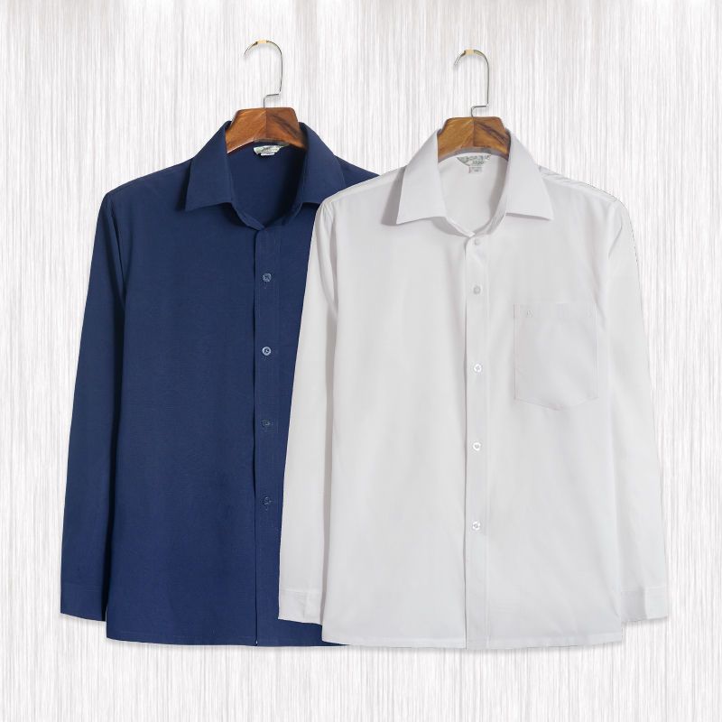 • 네이비블루+화이트 아이스실크 긴팔셔츠 [투피스탑]