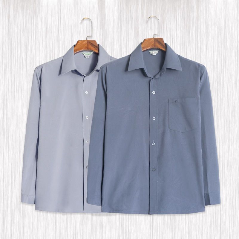 • 라이트 그레이 + 다크 그레이 아이스 실크 긴팔 셔츠 [투피스 탑]
