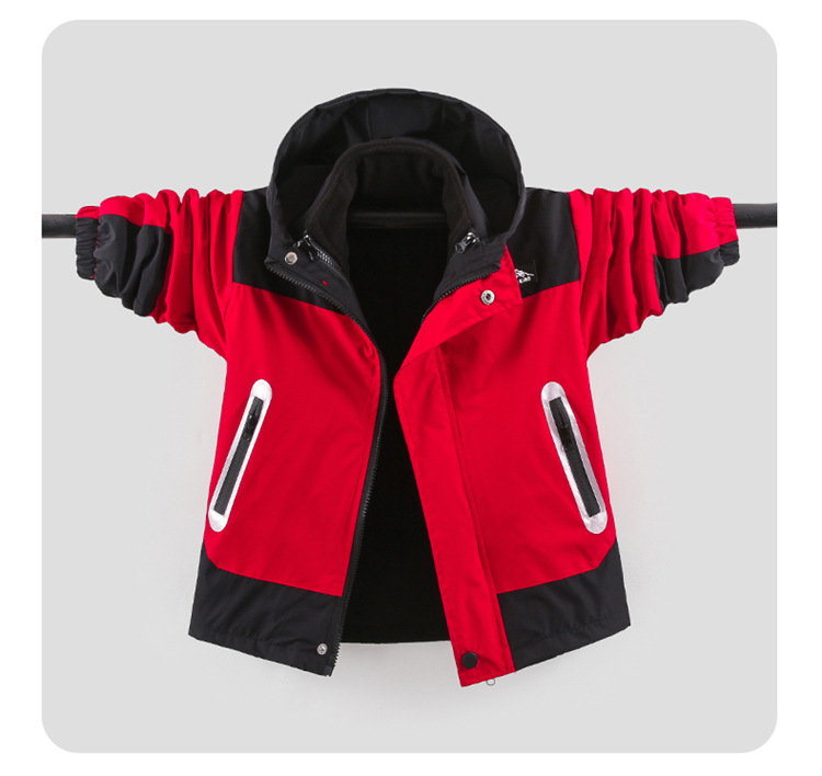 남학생 기모 충전 재킷 2024 년 봄과 가을 중년 어린이를위한 새로운 어린이 3 대 1 분리 가능한 최고 가을 옷
