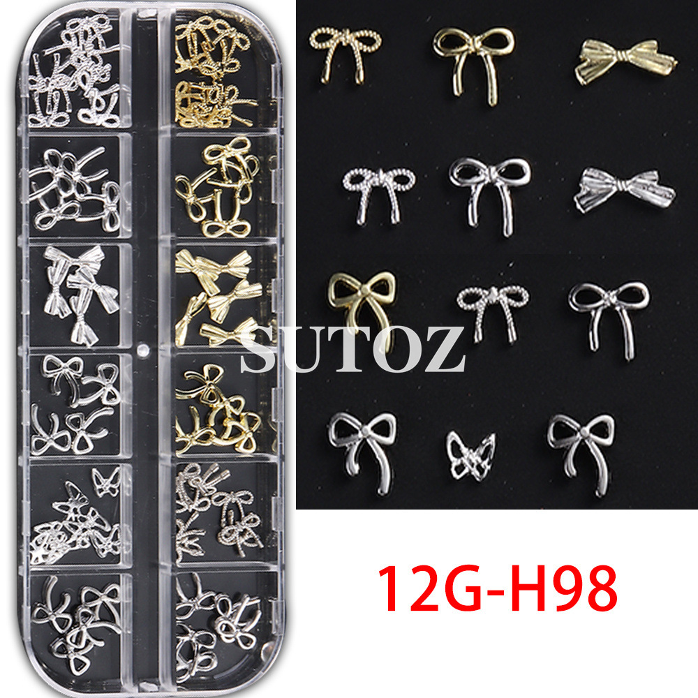 2024 국경 새로운 네일 아트 액세서리 프랑스 3 차원 금속 리벳 활 소녀 네일 아트 장식 액세서리