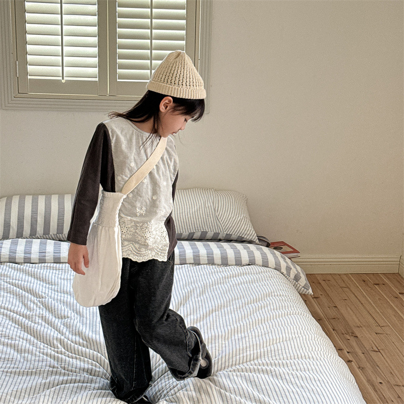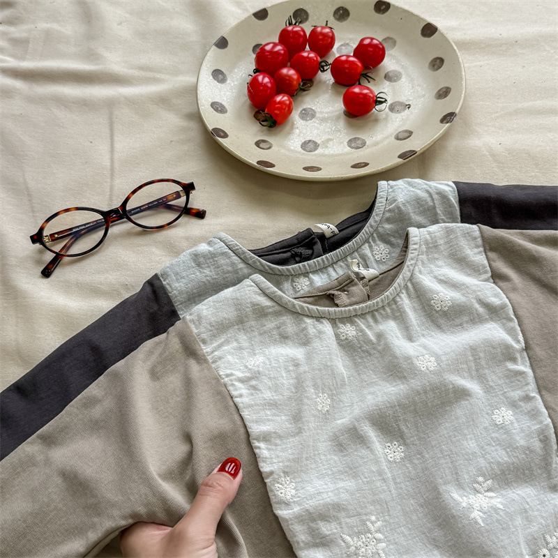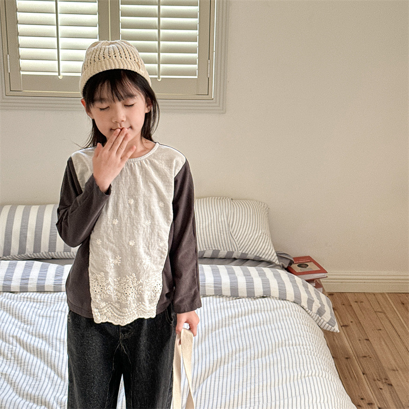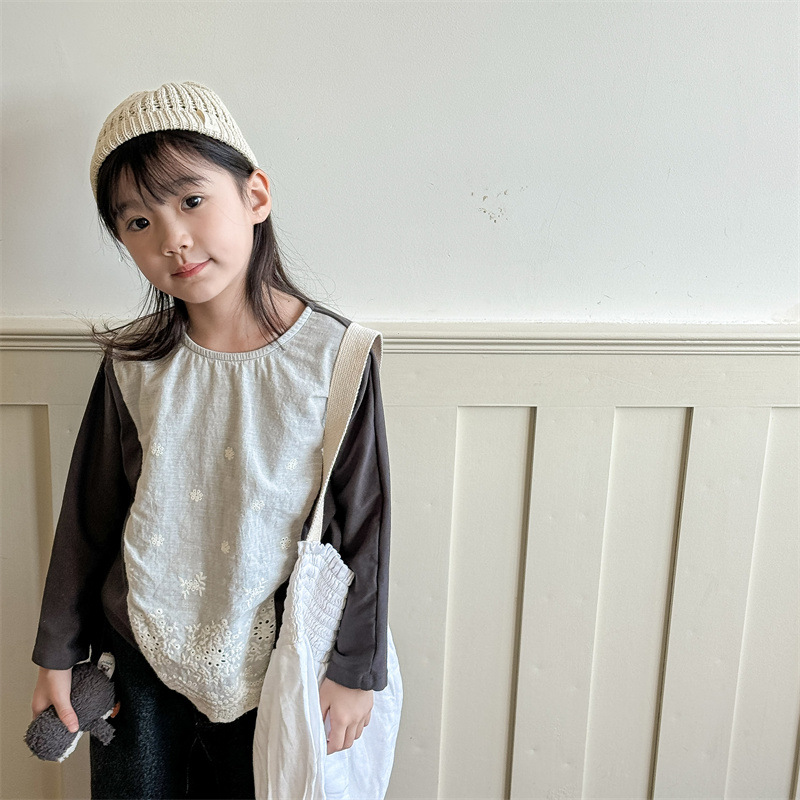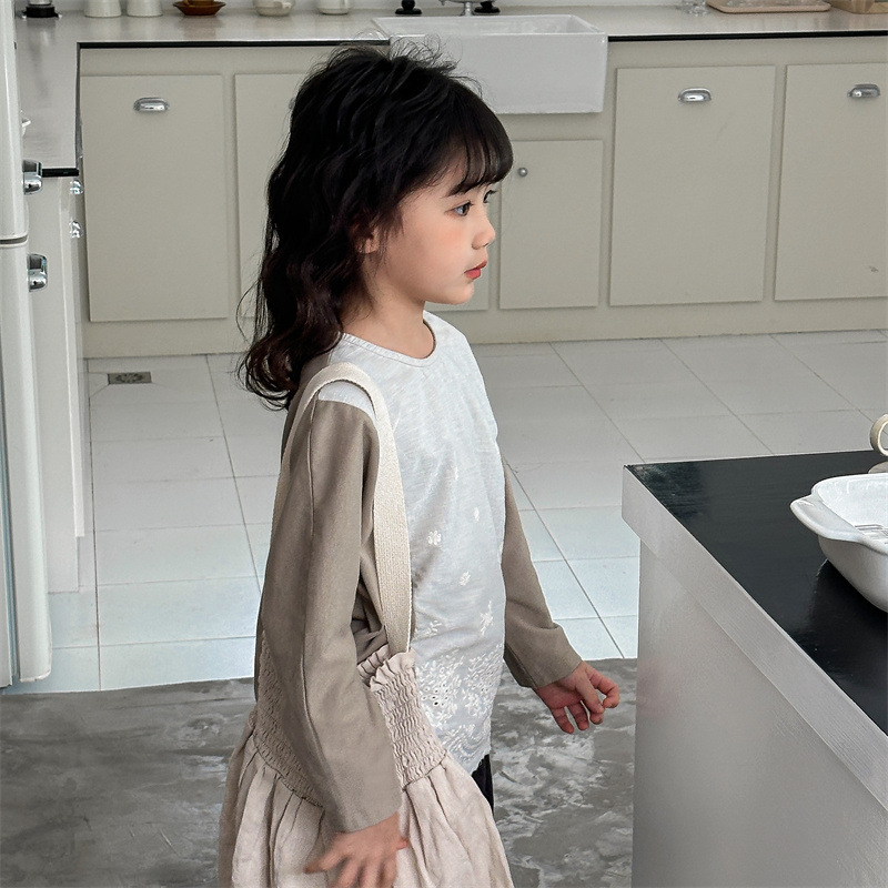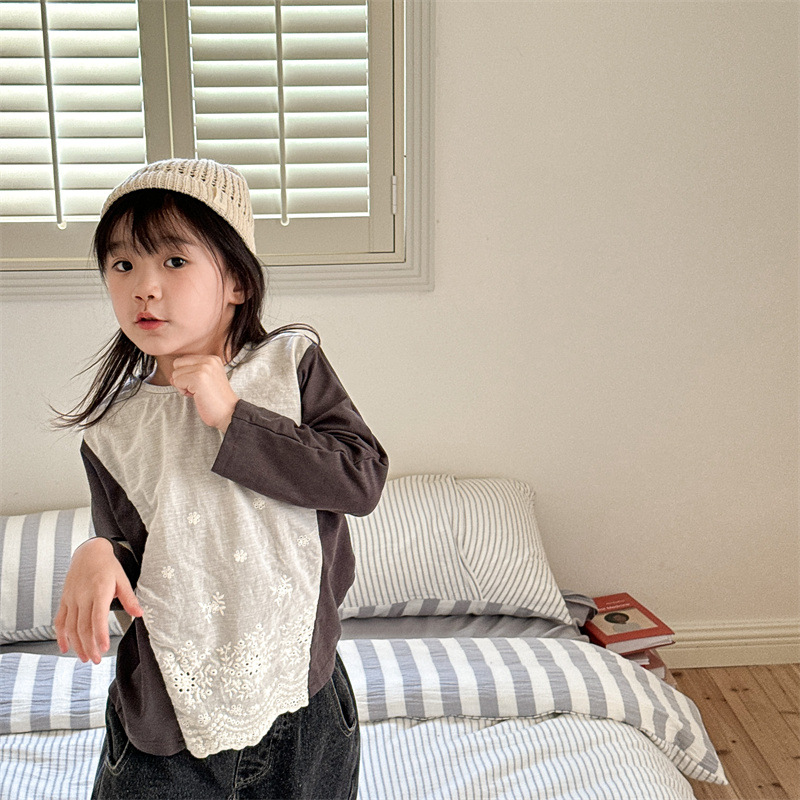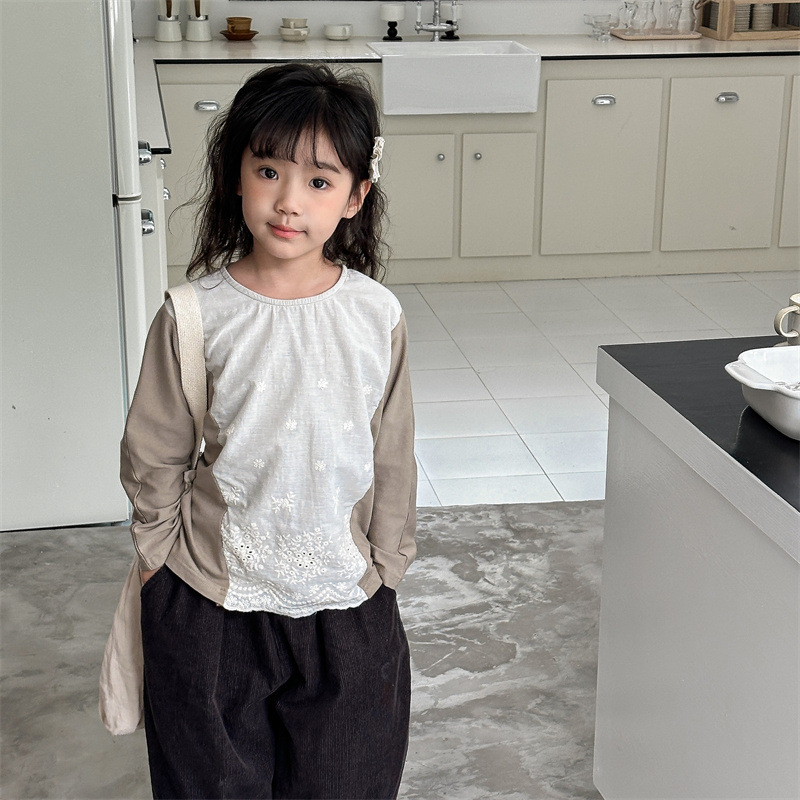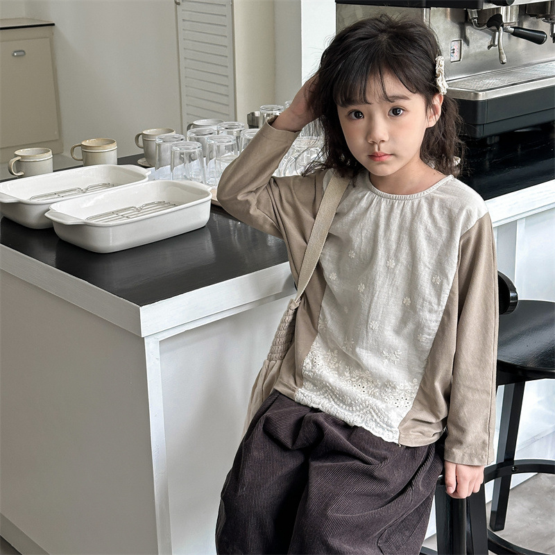 여자 셔츠 2024 가을 어린이 착용 새로운 한국 스타일 소녀 세련된 바느질베이스 셔츠 아기 캐주얼 탑