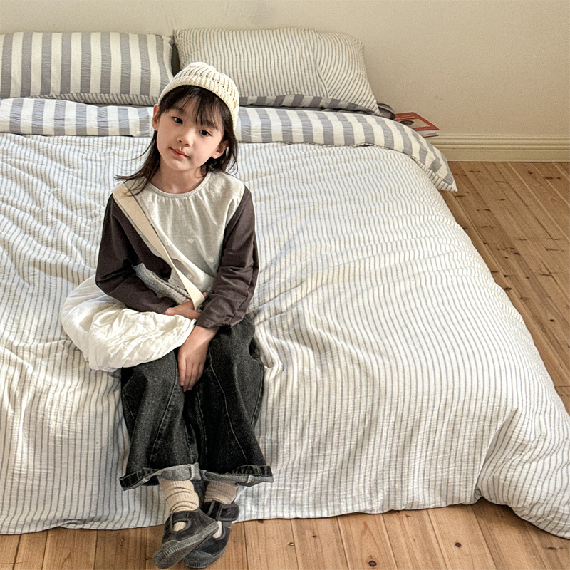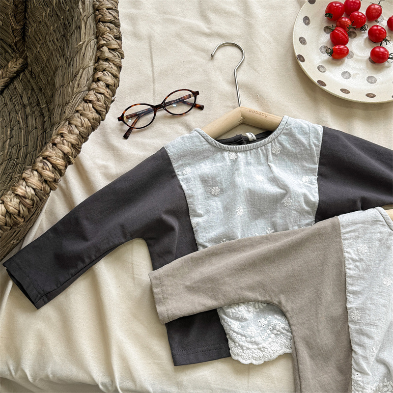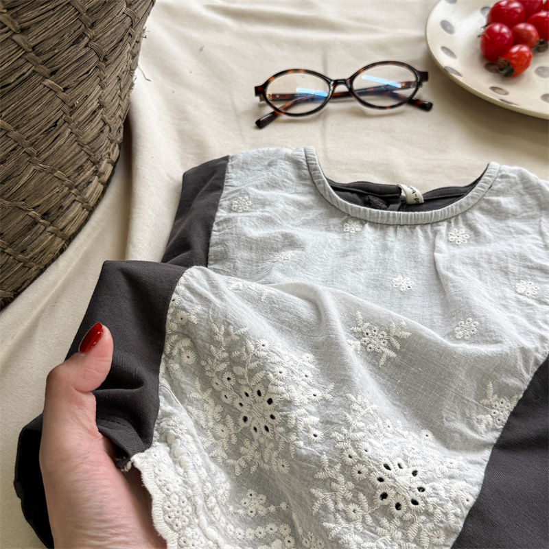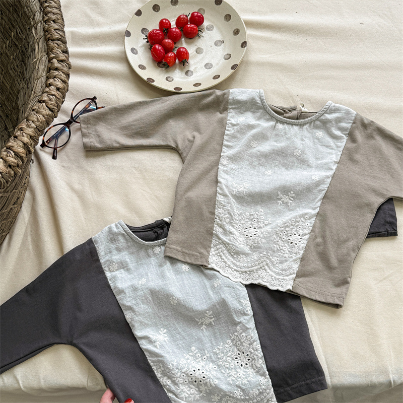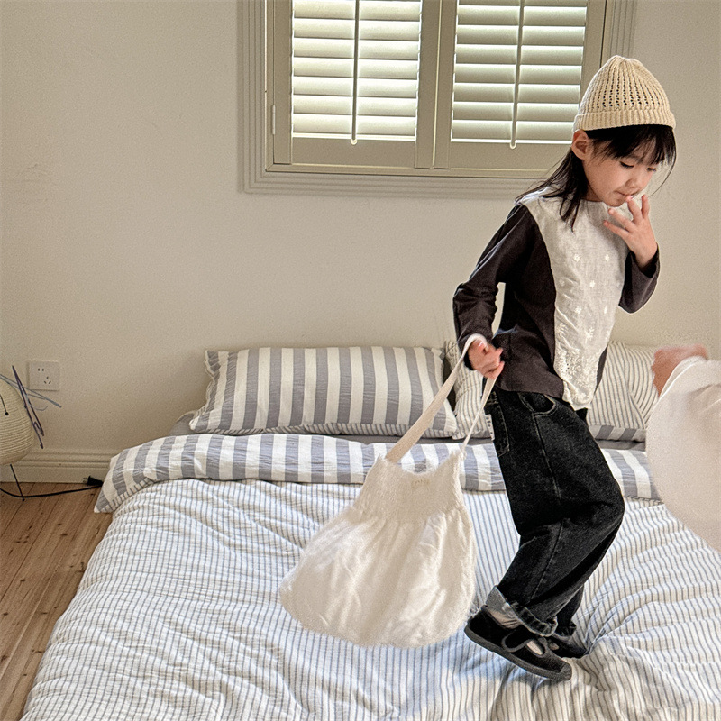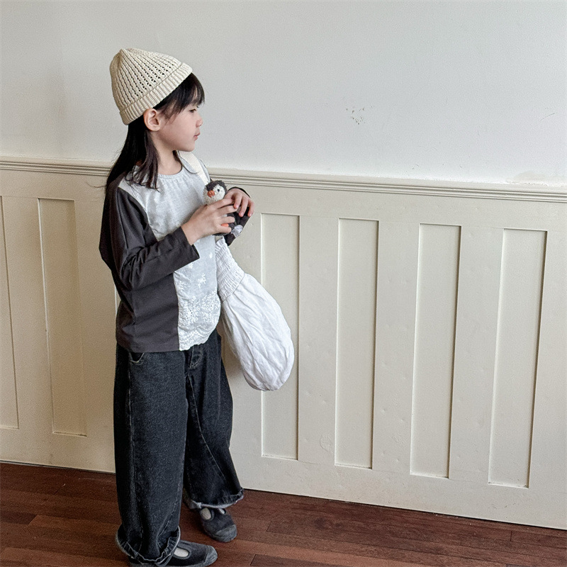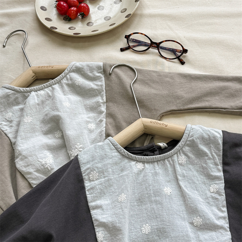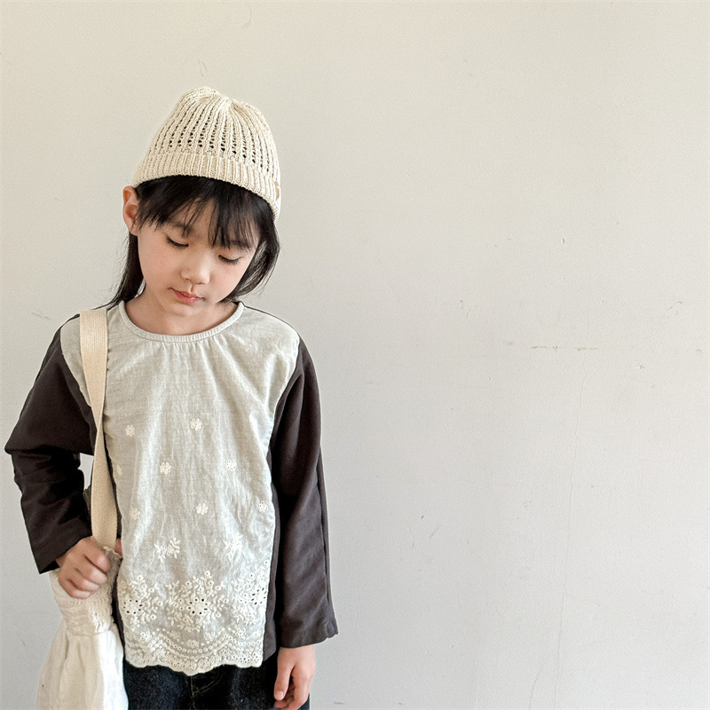 여자 셔츠 2024 가을 어린이 착용 새로운 한국 스타일 소녀 세련된 바느질베이스 셔츠 아기 캐주얼 탑
