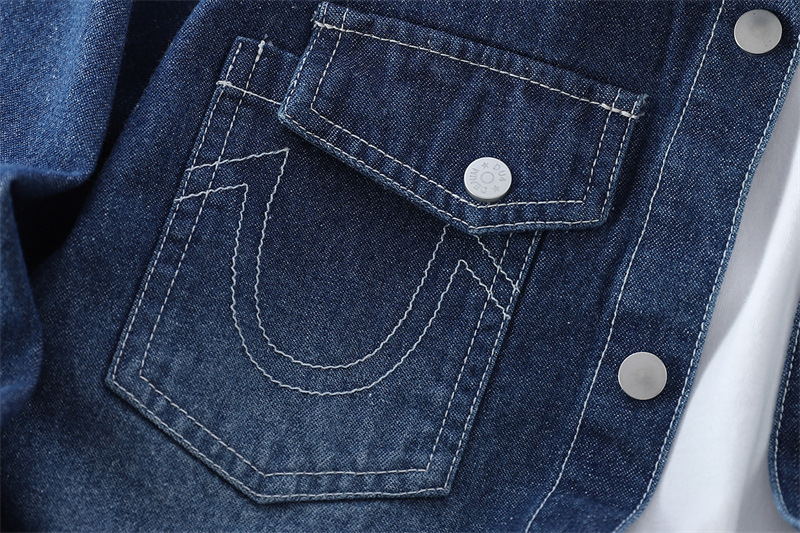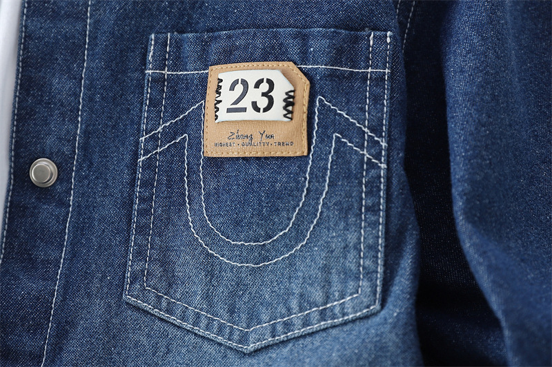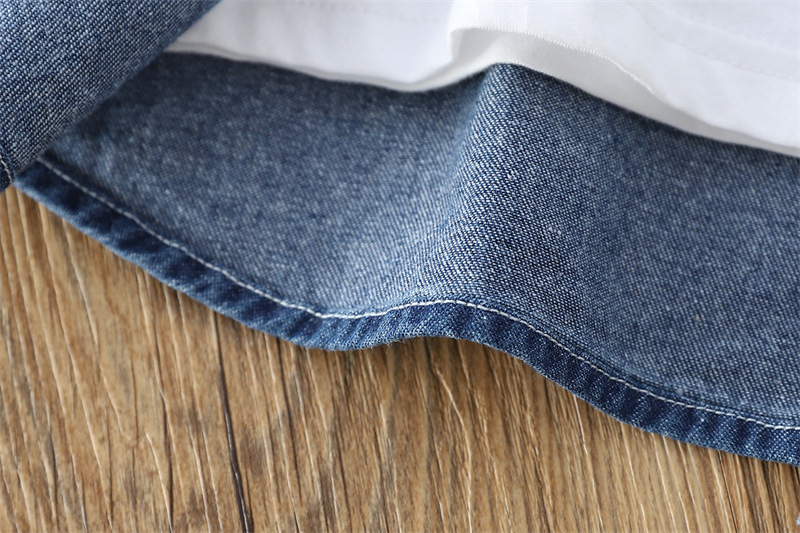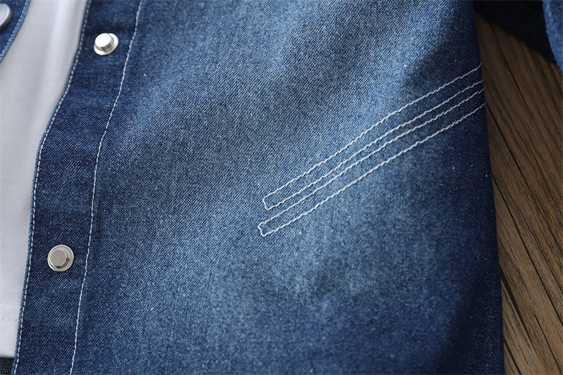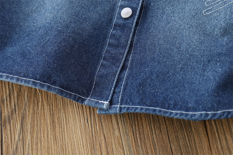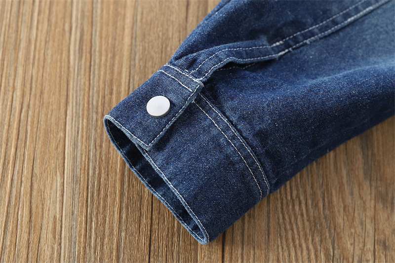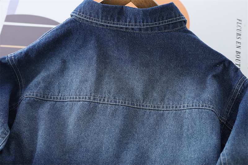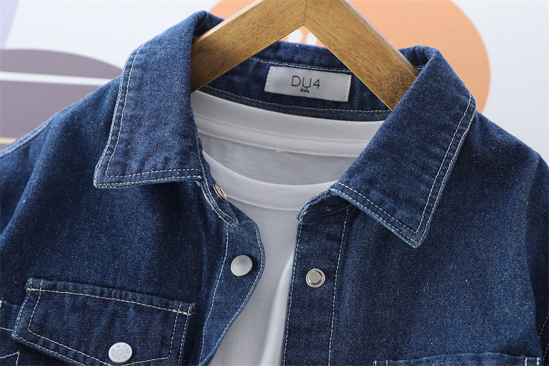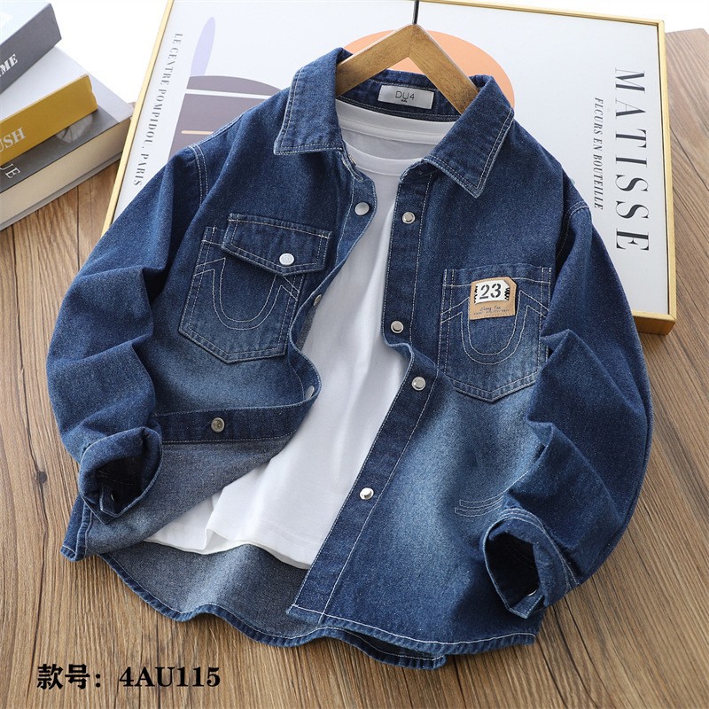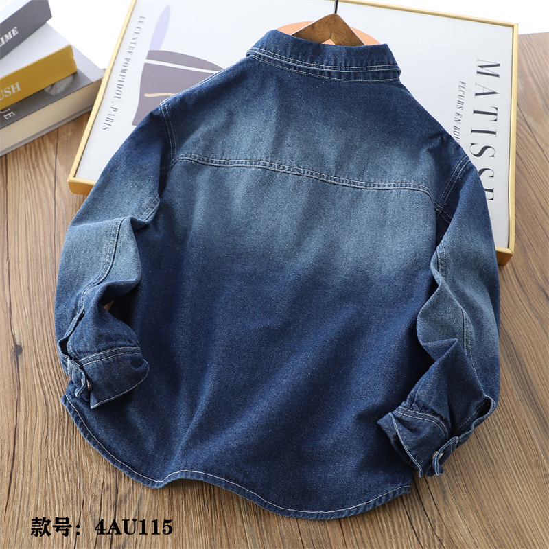 어린이 셔츠 큰 소년과 소녀 데님 셔츠 봄과 가을 긴 소매 옷깃 탑 어린이 의류 4au115스토어 가기