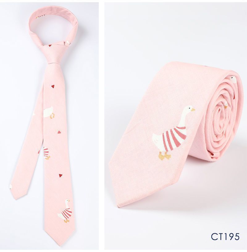 남자와 여자의 넥타이 학생 대학 스타일 귀여운 한국 좁은 조수 6CM 창조적 인 성격 만화 패턴 작은 노란 오리