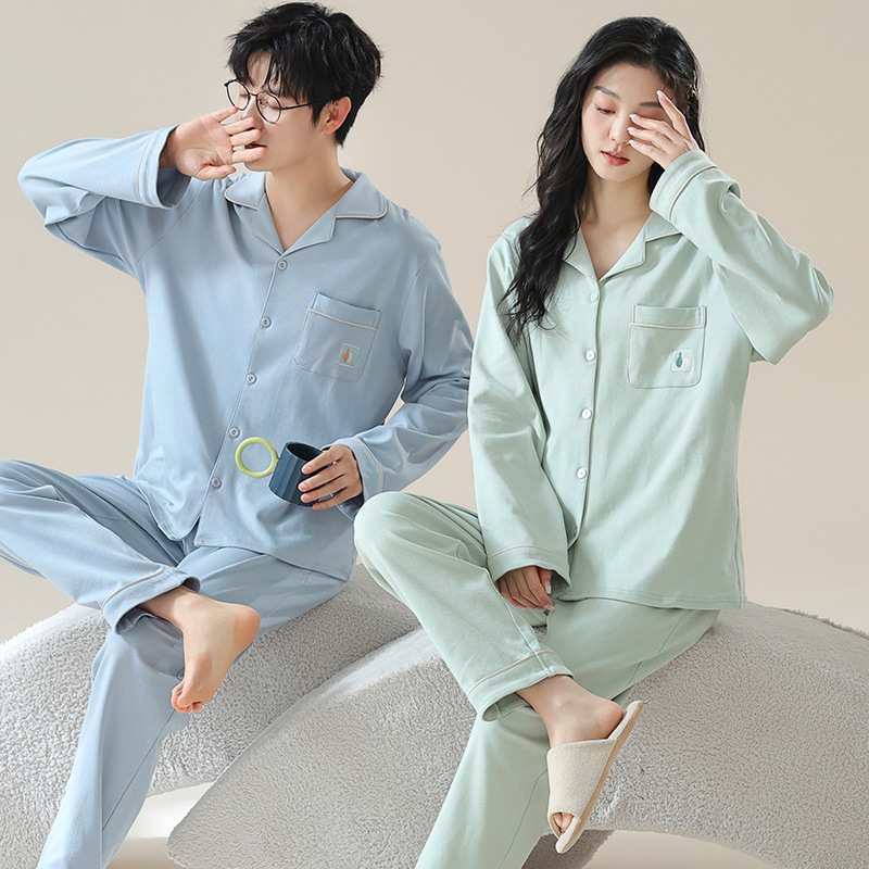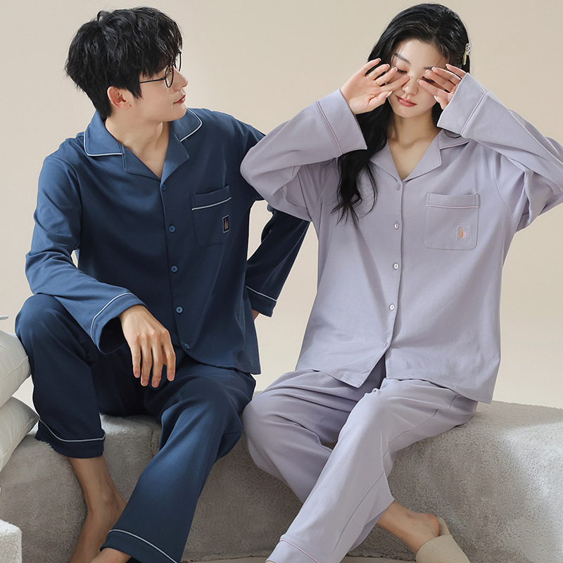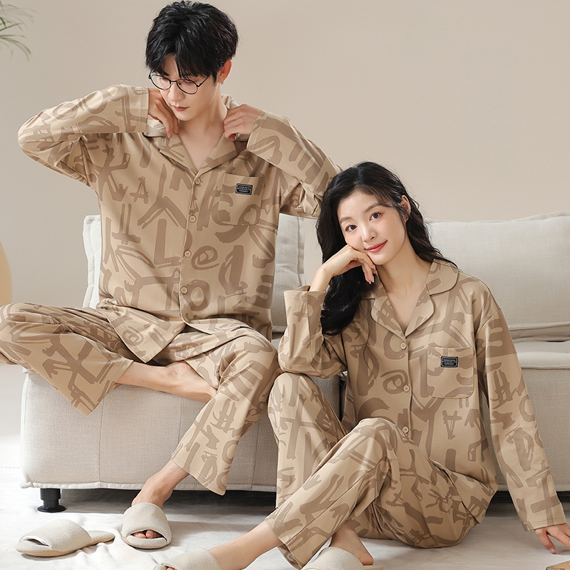 새로운 가을 카디건 옷깃 커플 잠옷 남자와 여자의 긴 소매 바지 봄과 가을 느슨한 캐주얼 홈 의류 세트스토어 가기