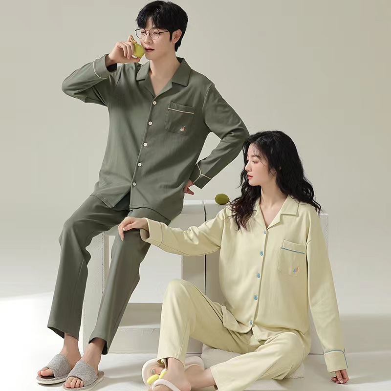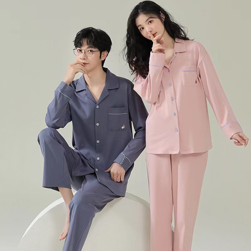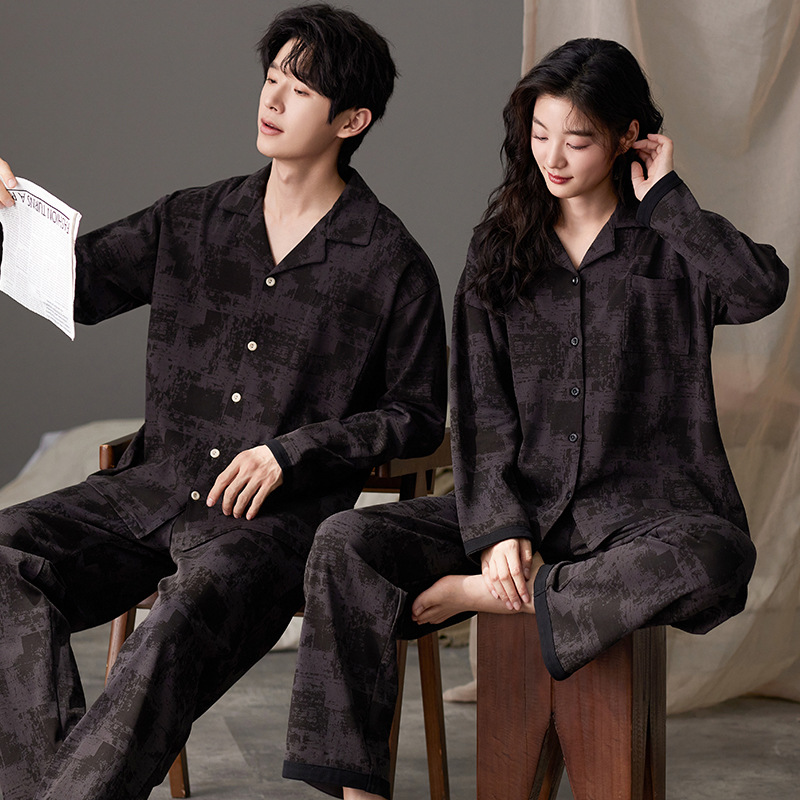 새로운 가을 카디건 옷깃 커플 잠옷 남자와 여자의 긴 소매 바지 봄과 가을 느슨한 캐주얼 홈 의류 세트