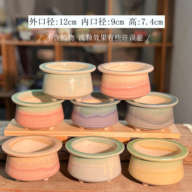 새로운 마카롱 다육 꽃 냄비 간단한 그라디언트 얼음 크래킹 유약 모자 브림 창조적 인 실내 화분 홈 세라믹 냄비