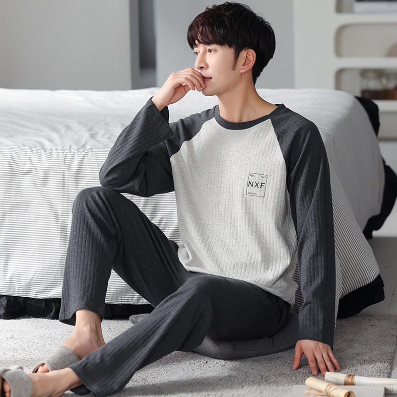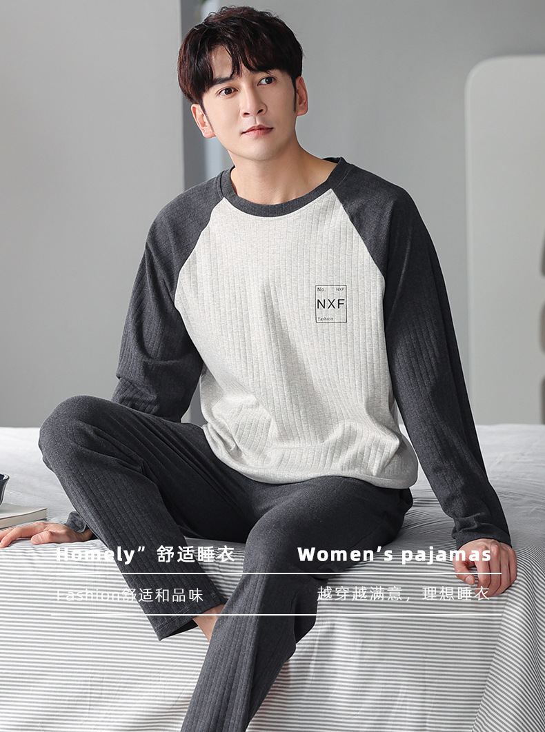 240kg 집 옷 봄과 가을 긴 소매 잠옷 남자의 광범위한 둥근 목 착용 6535 Combed Cotton 세트스토어 가기