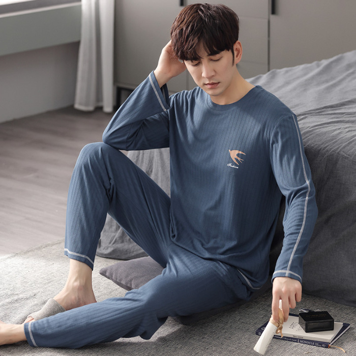 240kg 집 옷 봄과 가을 긴 소매 잠옷 남자의 광범위한 둥근 목 착용 6535 Combed Cotton 세트