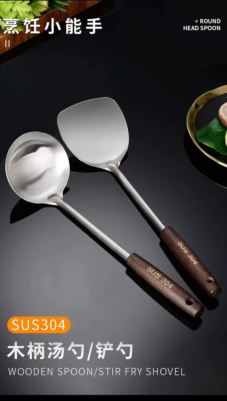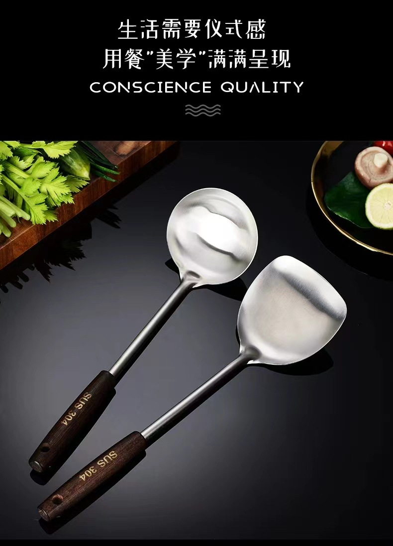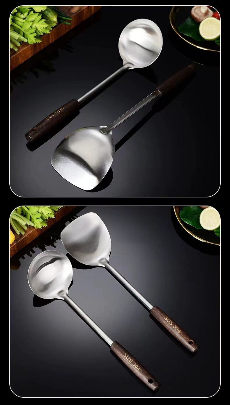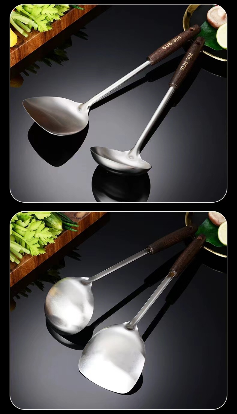 스테인레스 스틸 고대 나무 주걱 냄비 숟가락 주방 용품 세트 단단한 나무 볶음 삽 숟가락 주방 용품 세트 고대 나무 손잡이 도매