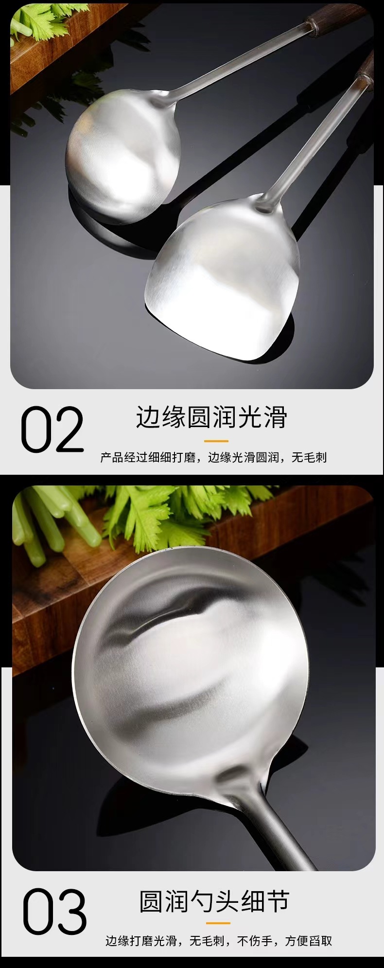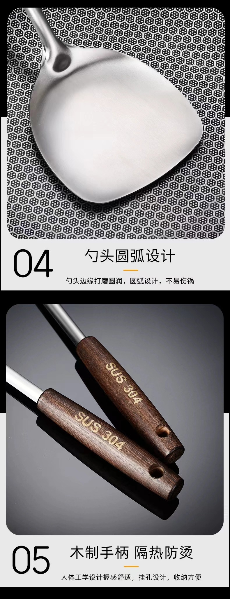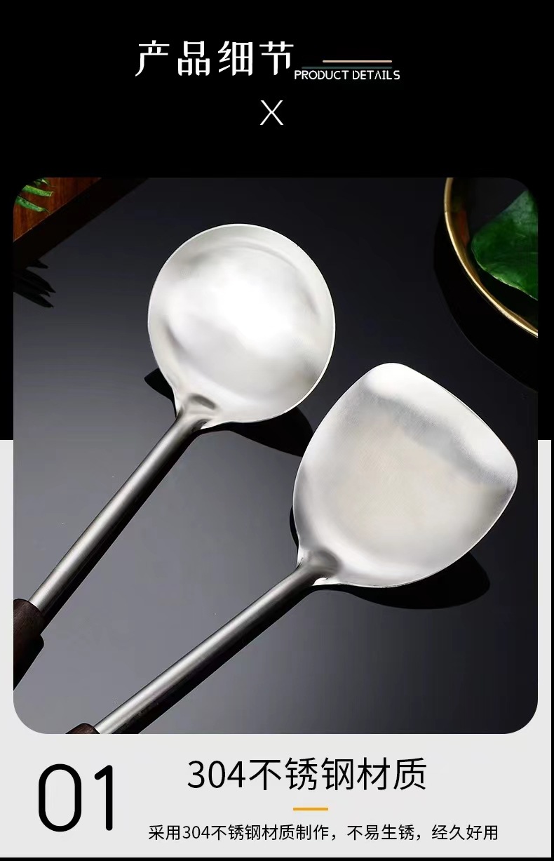 스테인레스 스틸 고대 나무 주걱 냄비 숟가락 주방 용품 세트 단단한 나무 볶음 삽 숟가락 주방 용품 세트 고대 나무 손잡이 도매