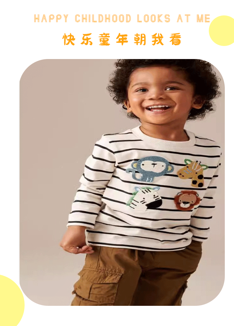 Littlebuddy 가을과 겨울 스트라이프 풀 스탠드 긴 소매 어린이 티셔츠 유럽과 미국 스타일의 면화 2-7 세 둥근 목스토어 가기