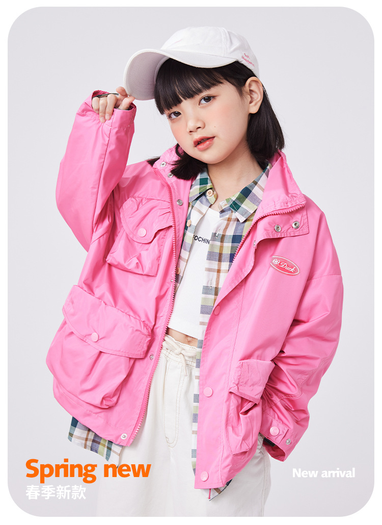 QQduck 코코 덕 아동복 봄 신상 여아 재킷 중대형 아동 후드 재킷 스탠드 칼라 캐주얼 재킷 트렌디