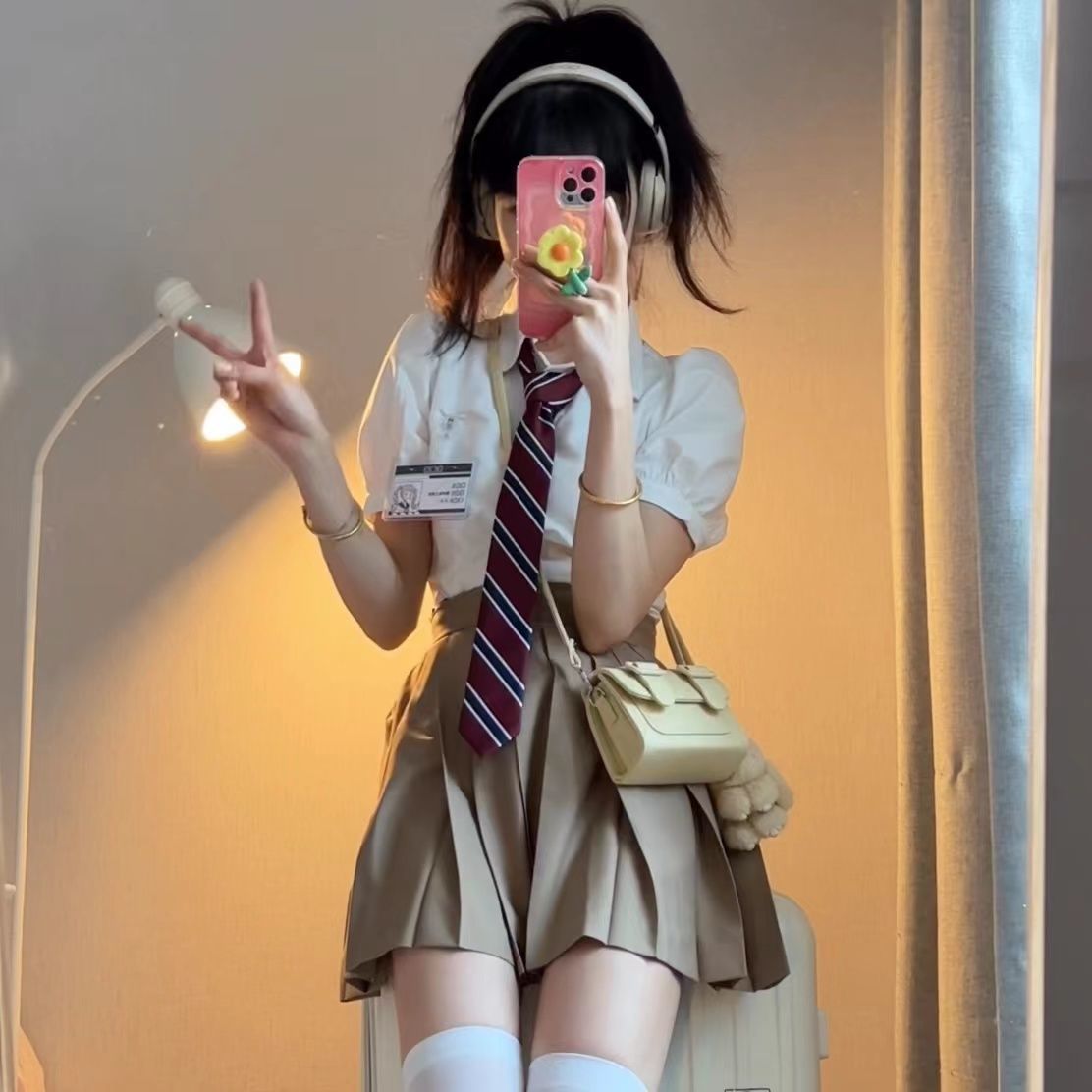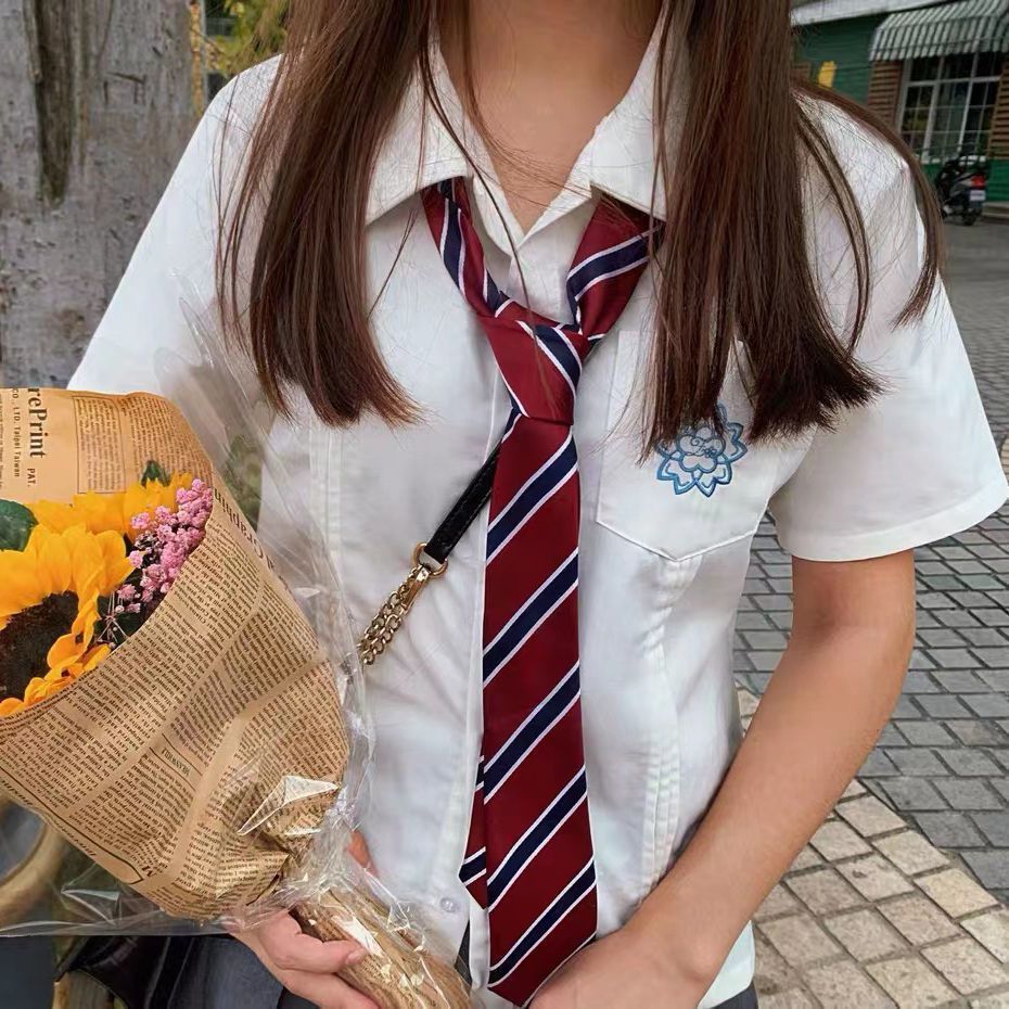 버건디 줄무늬 JK 넥타이 넥타이 칼라 플라워 활 장식 무료 히트 남성과 여성 학생 대학 스타일 학교스토어 가기