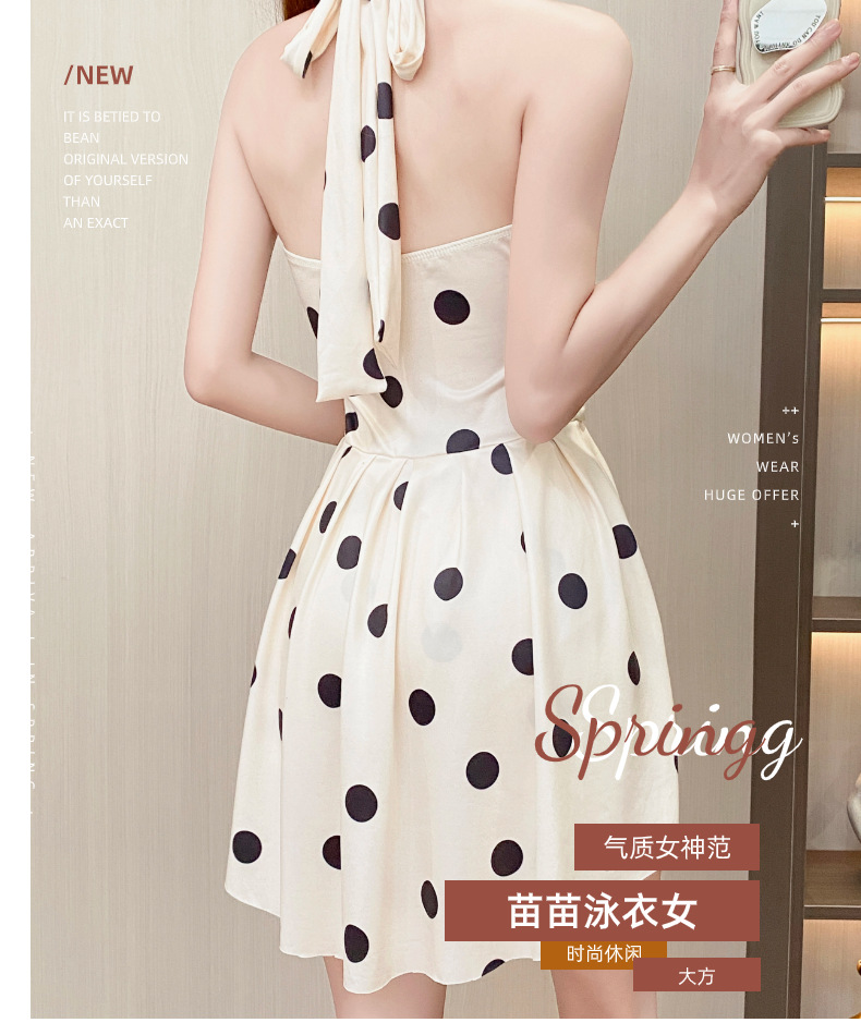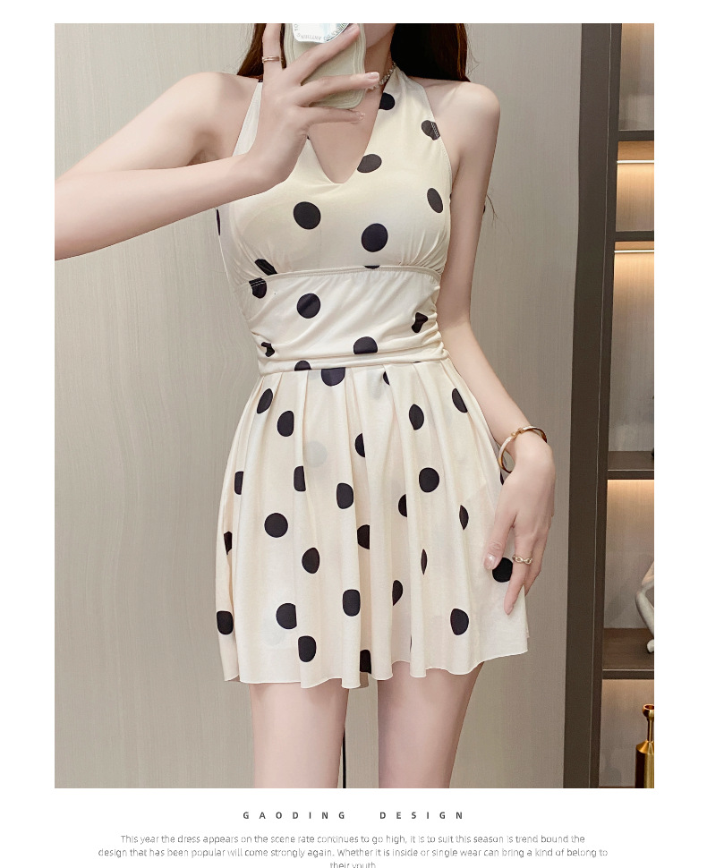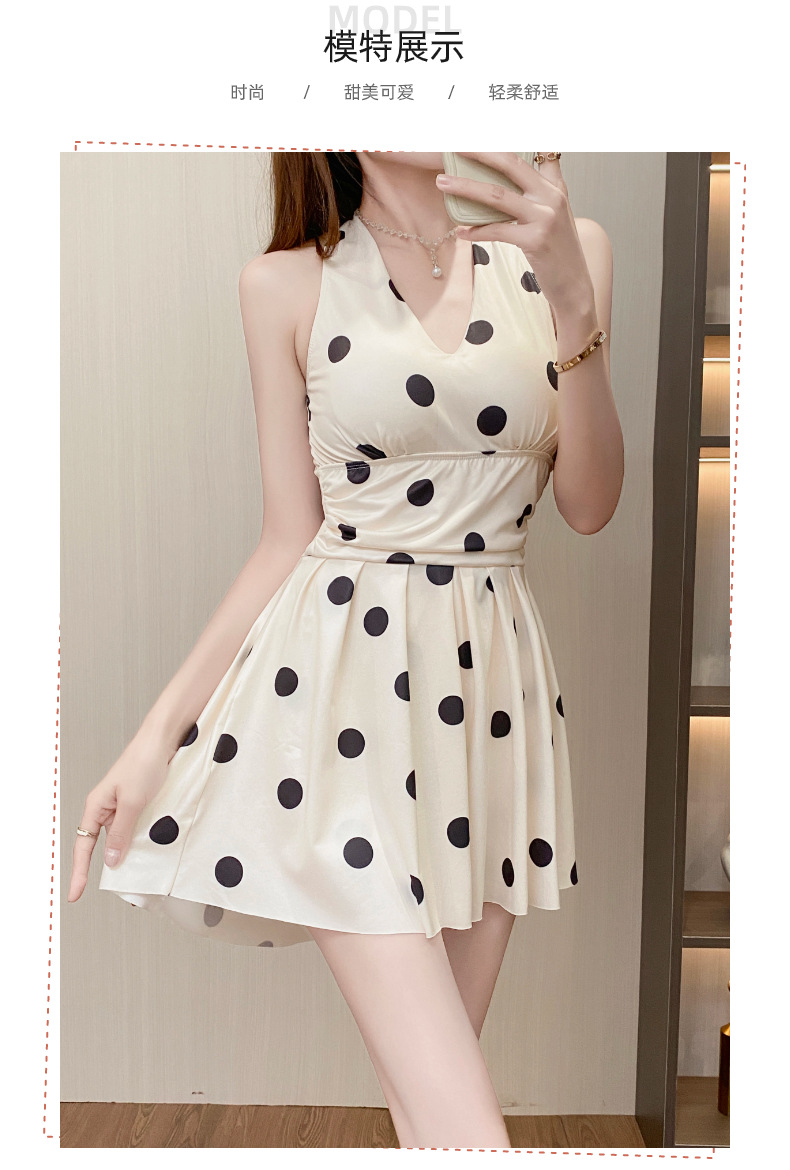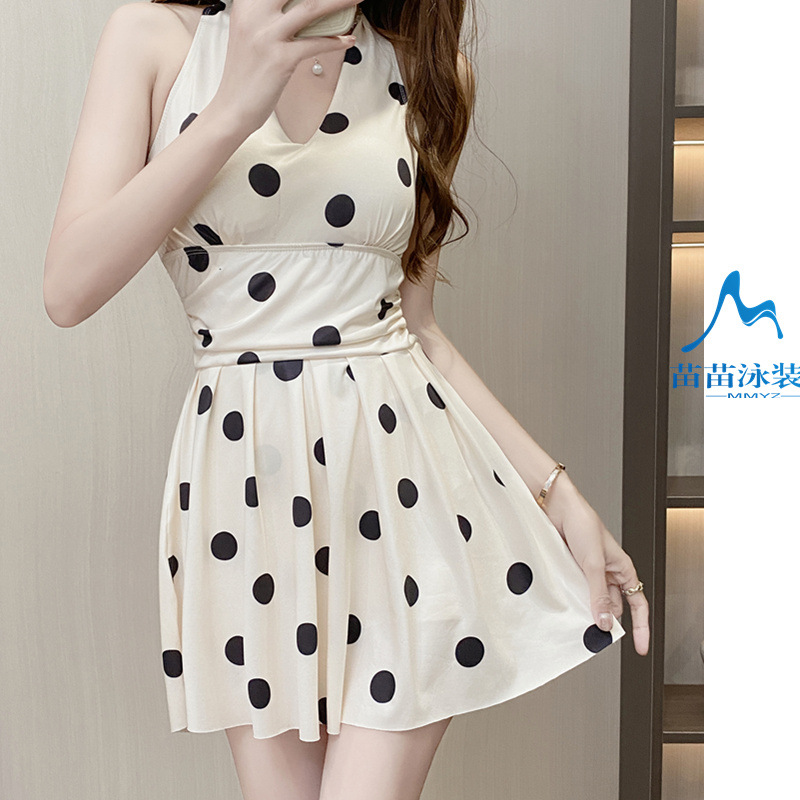 프랑스 스타일 헵번 스타일 퓨어, 웨이브 포인트 넥 점프 수트 수영복 여성용 여름 섹시한 백리스 휴가 수영복