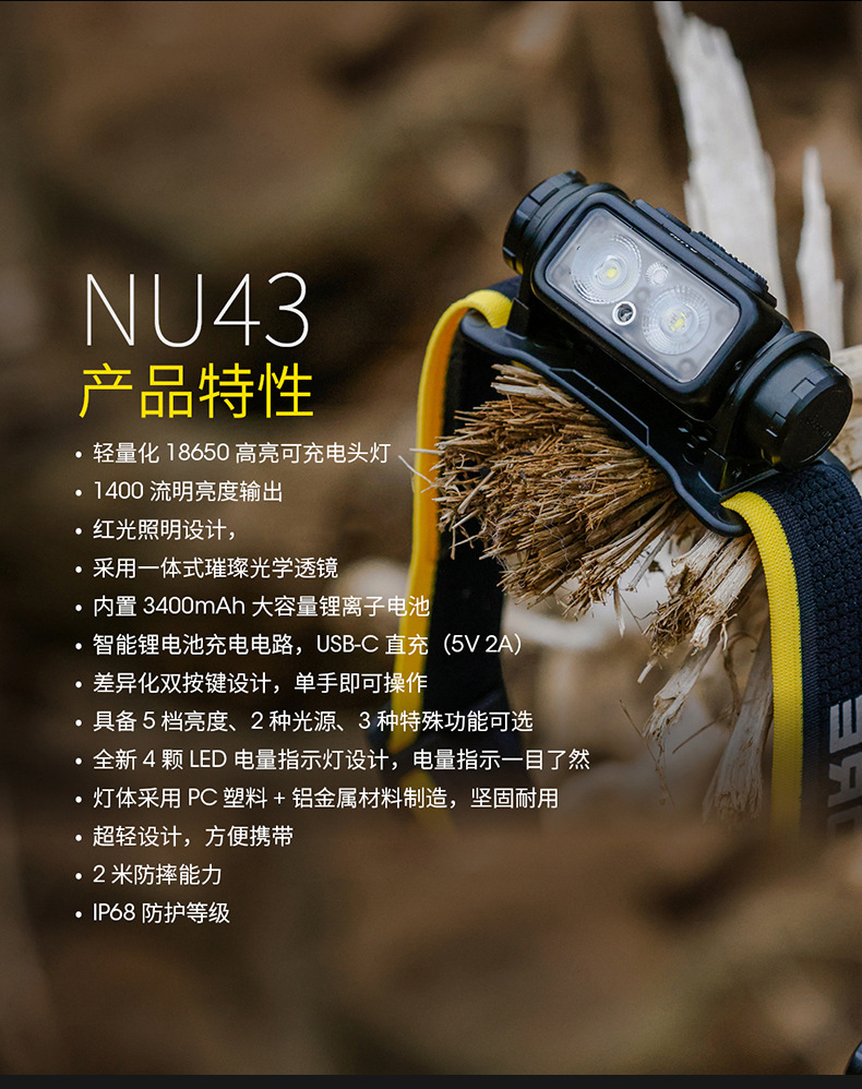 NITECORE Knight Cole NU43 헤드 라이트 야외 하이킹 등산 헤드 라이트 경량 충전식 헤드 라이트스토어 가기