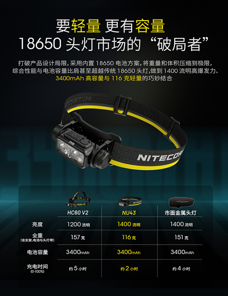 NITECORE Knight Cole NU43 헤드 라이트 야외 하이킹 등산 헤드 라이트 경량 충전식 헤드 라이트