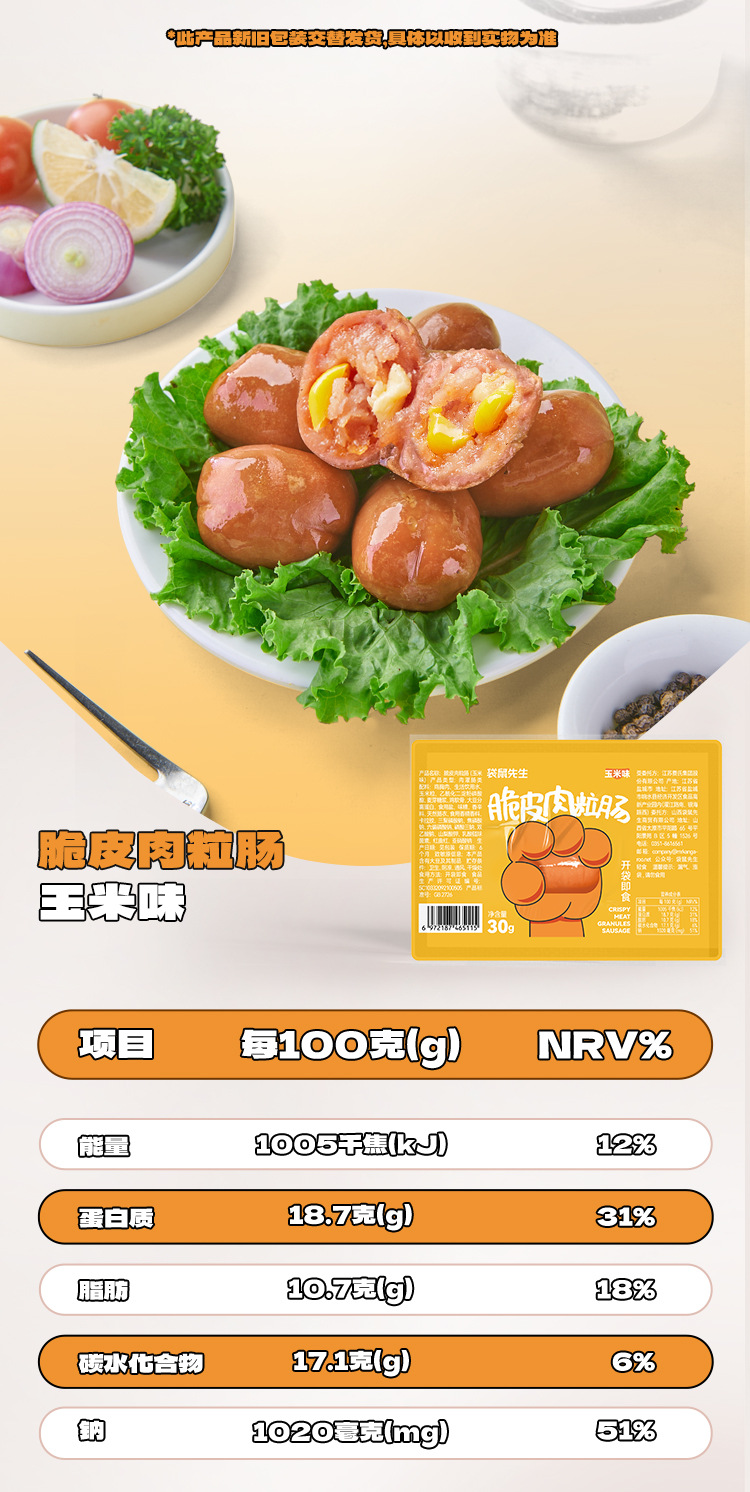 캥거루 옥수수 맛 바삭한 고기 곡물 소시지 인스턴트 닭 유방 소시지 간식 간식 간식 간식 간식