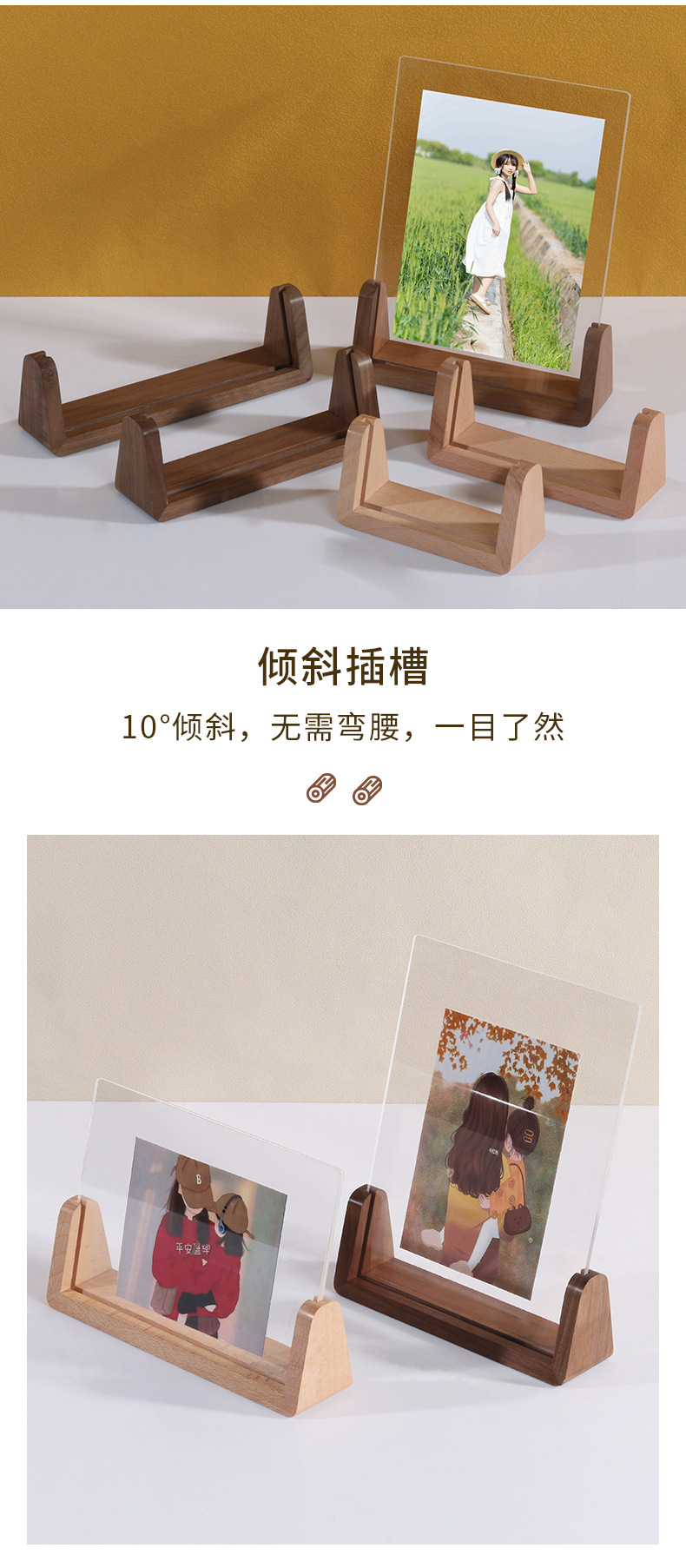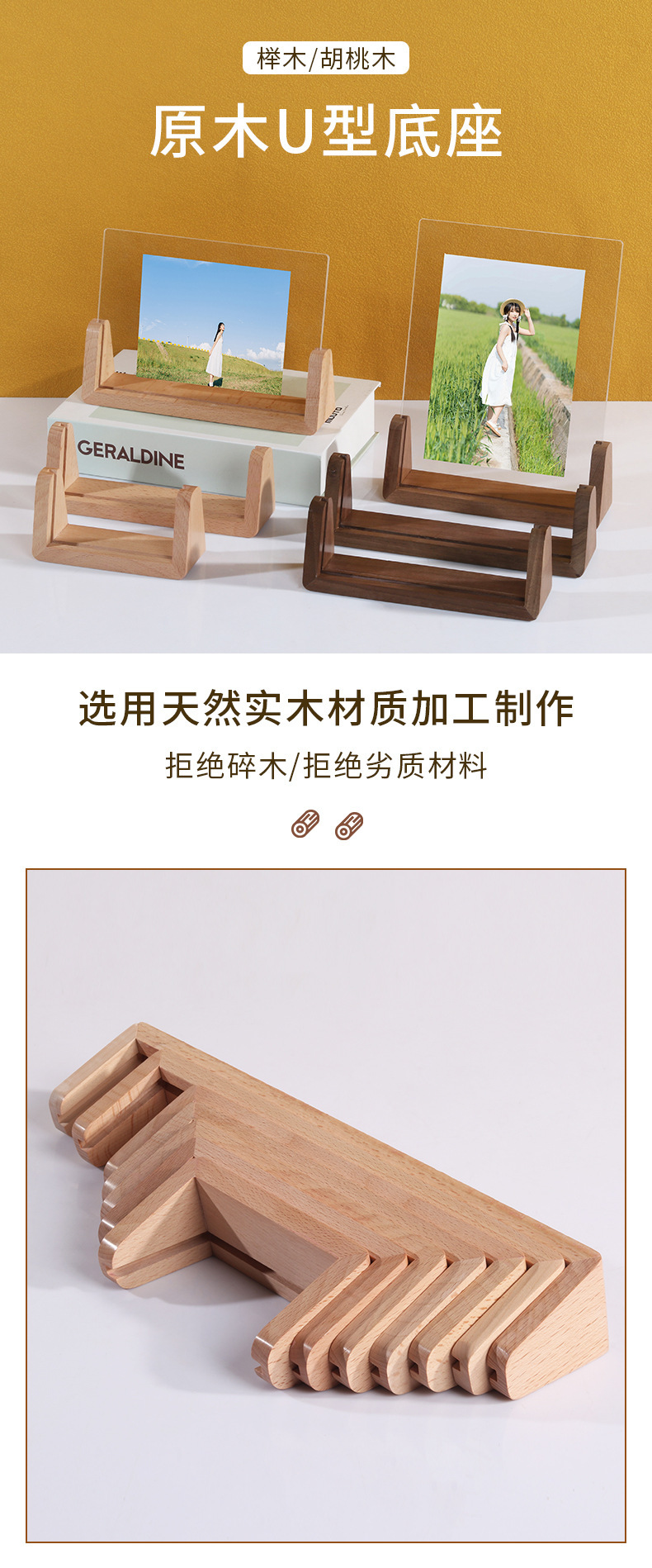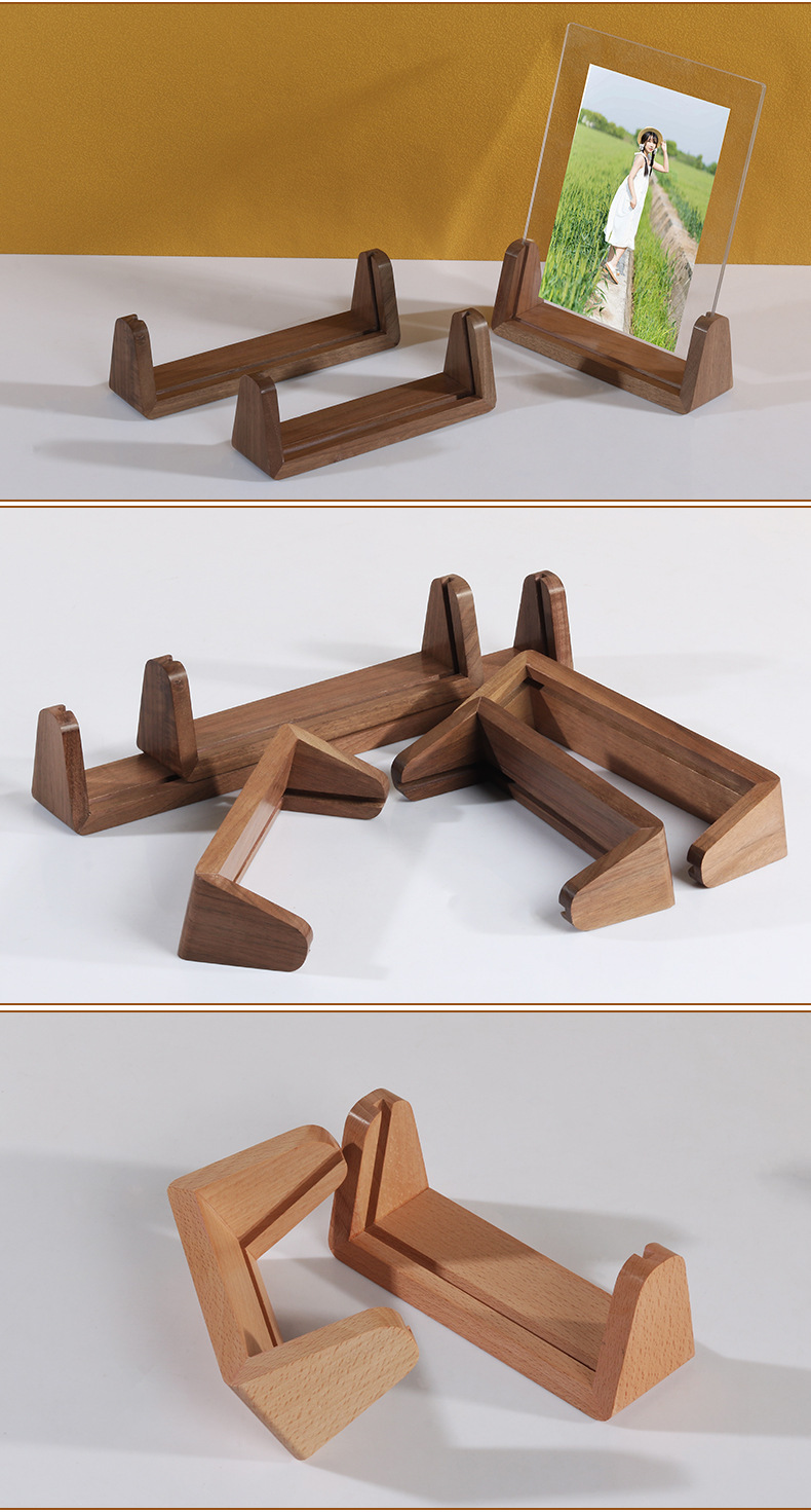 단단한 나무 사진 프레임 테이블 6 인치 창조적 인 U 자 모양의 고화질 아크릴 사진 프레임 엽서 데스크탑 디스플레이 프레임