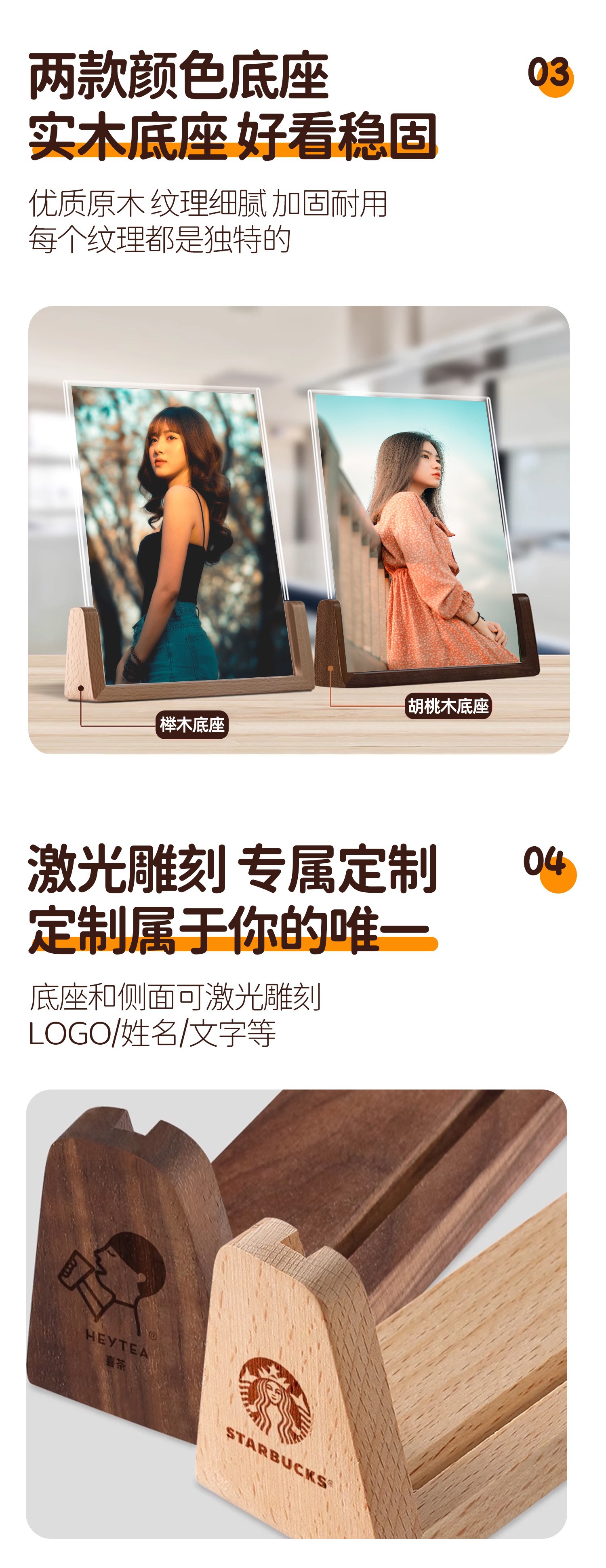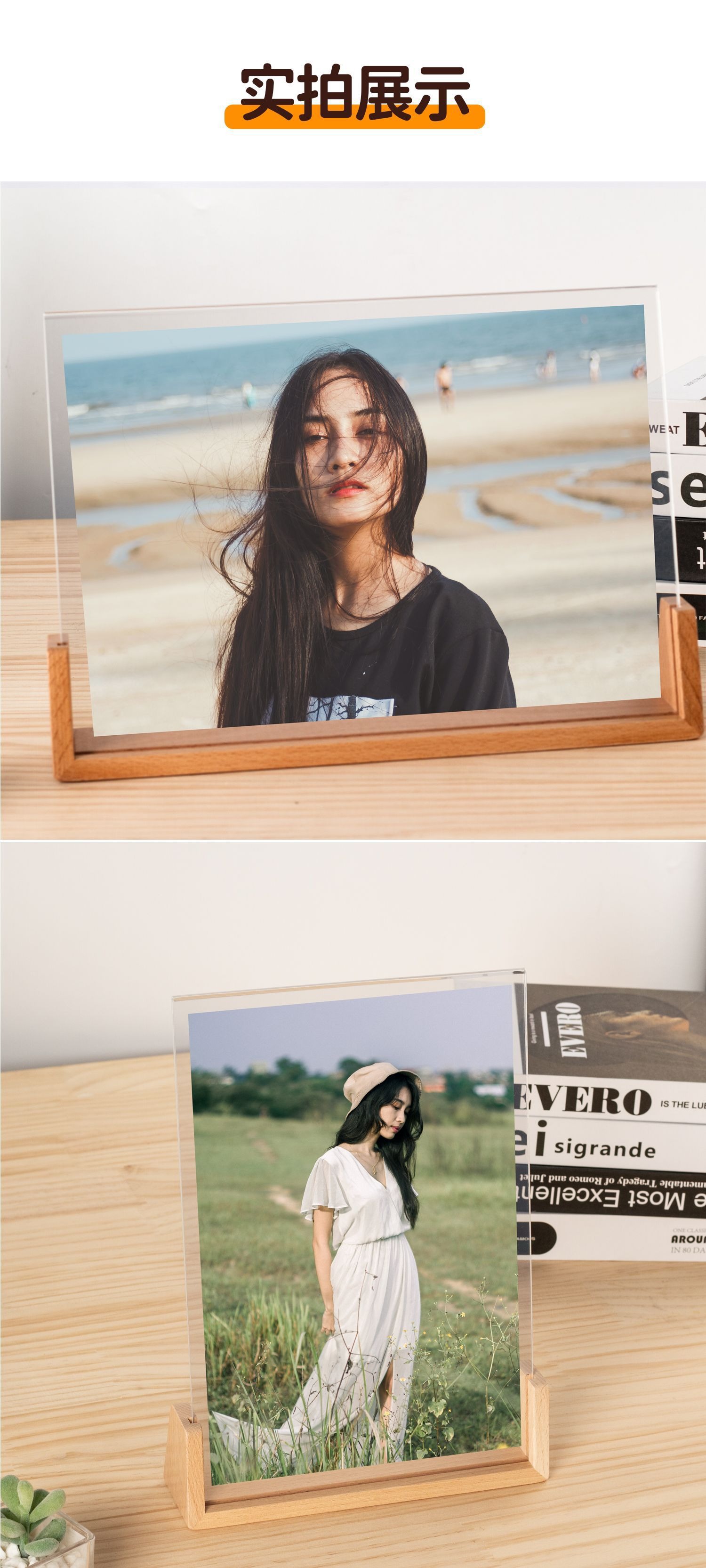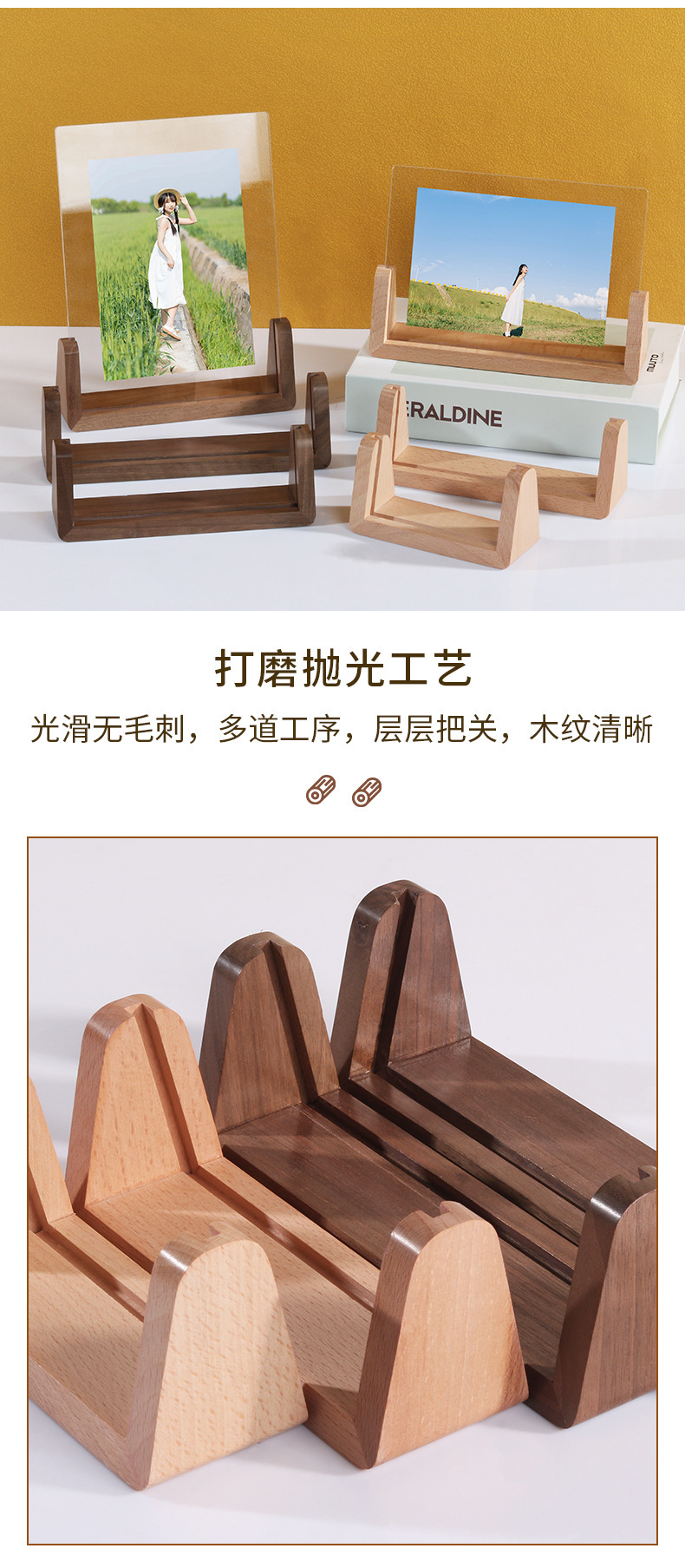 단단한 나무 사진 프레임 테이블 6 인치 창조적 인 U 자 모양의 고화질 아크릴 사진 프레임 엽서 데스크탑 디스플레이 프레임