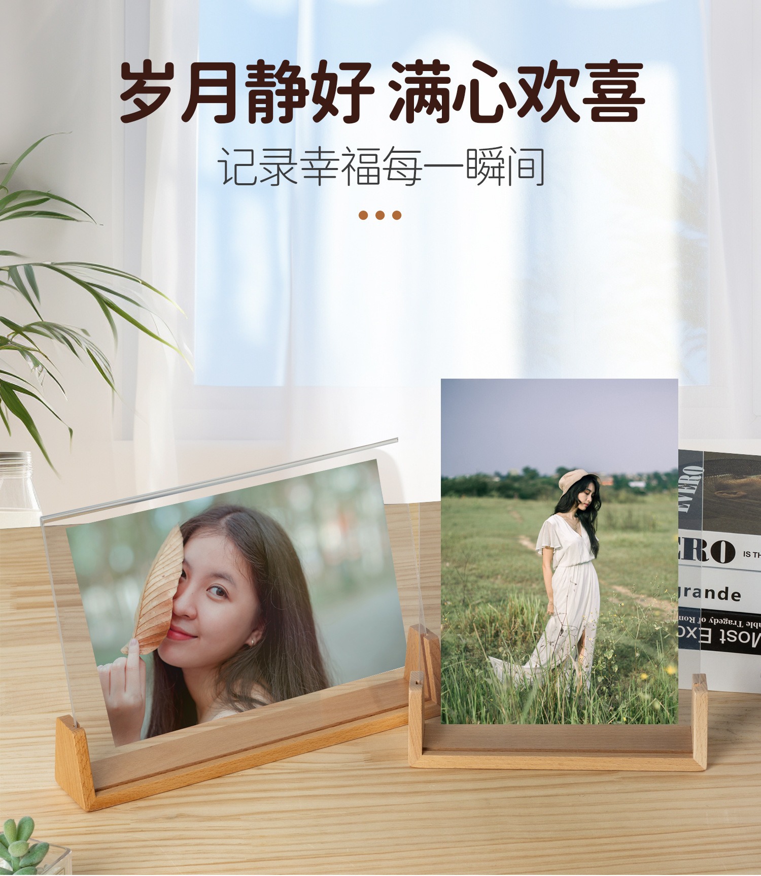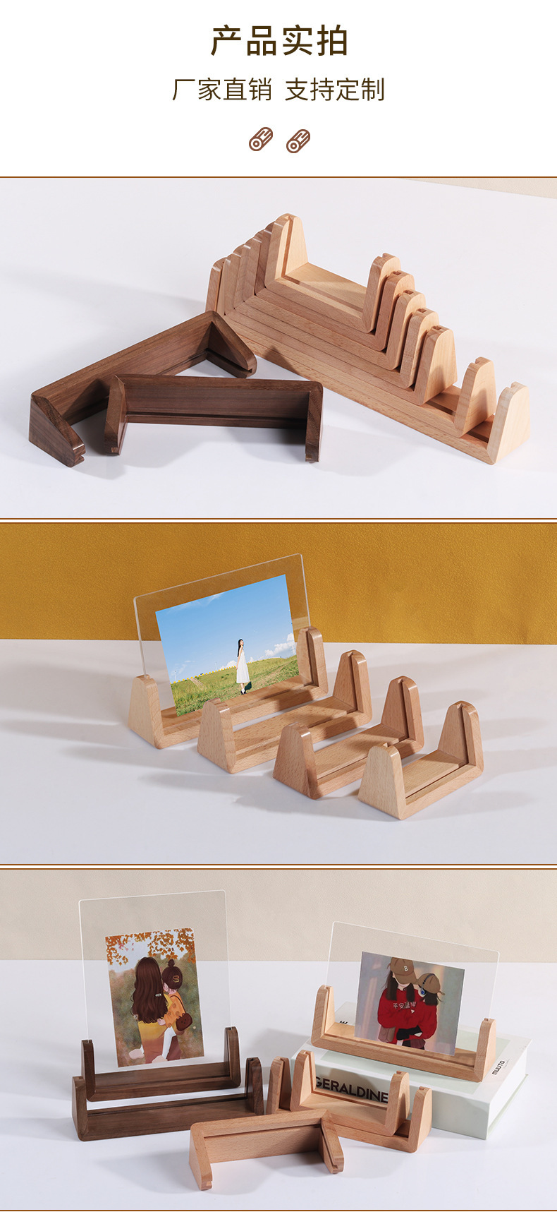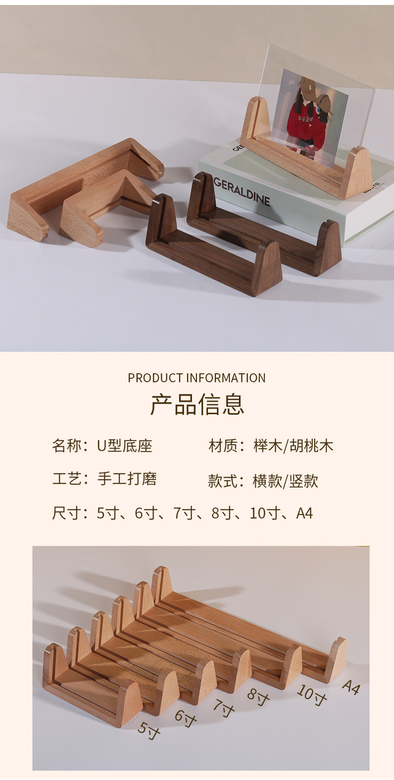 단단한 나무 사진 프레임 테이블 6 인치 창조적 인 U 자 모양의 고화질 아크릴 사진 프레임 엽서 데스크탑 디스플레이 프레임스토어 가기