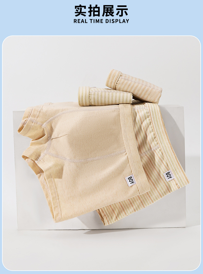 2025 새로운 천연 컬러 원사 면 소년 복서 중학생 중대형 어린이 복서 팬티 어린이 속옷 남성 청소년스토어 가기