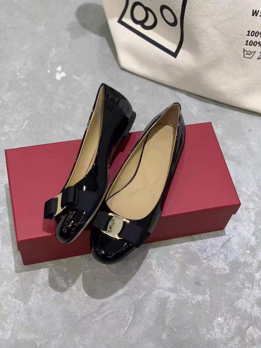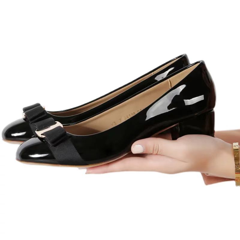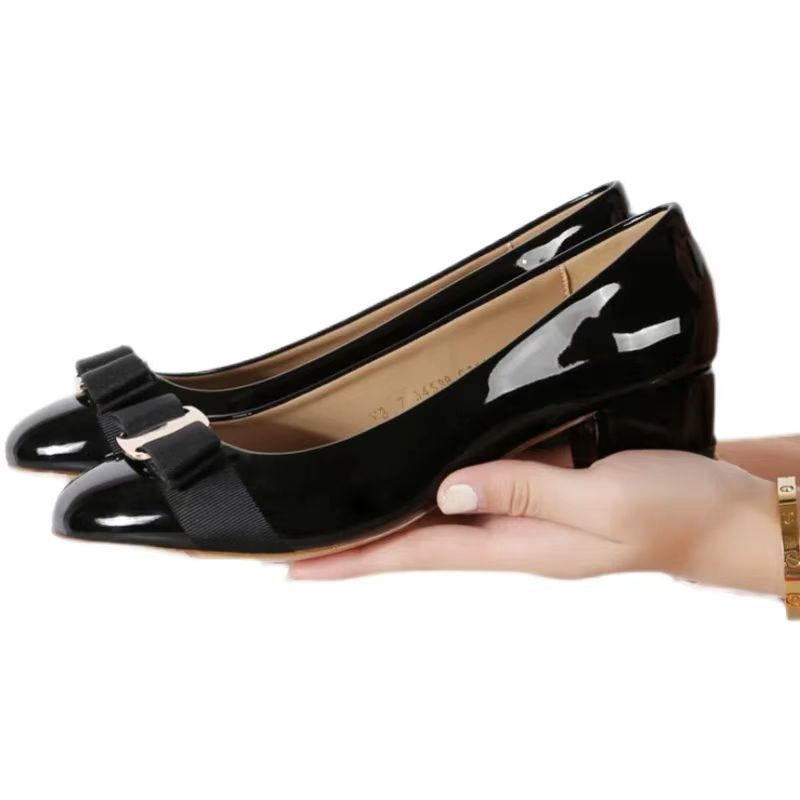 유럽풍 페이턴트 가죽 리본 플랫 여성화, 두꺼운 굽, 중간 굽, 라운드 토, 여성용 봄 가을 레트로 스타일 편안하고 다용도 신발
