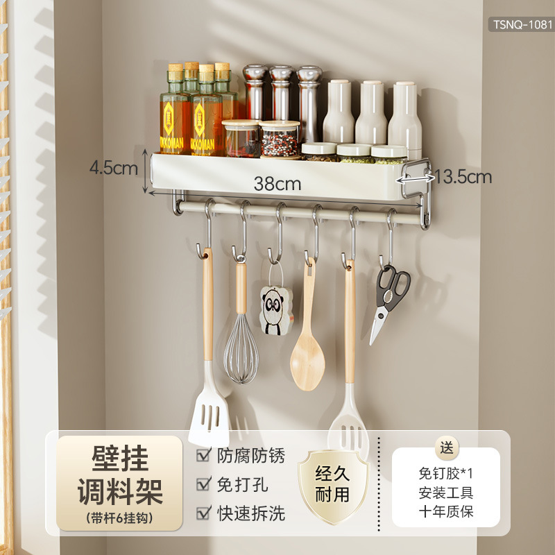 • [INS 크림 스타일] 막대가 있는 스파이스 랙 38 길이 + 후크 6개