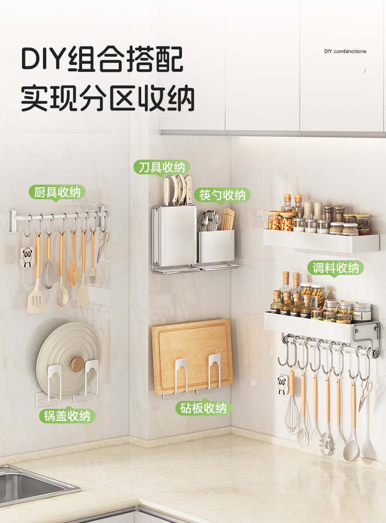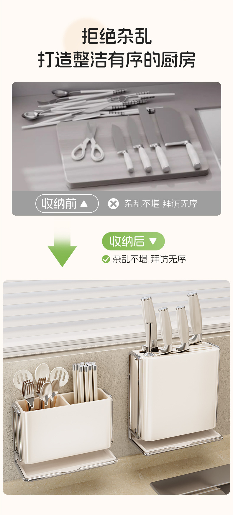 크림 스타일 새로운 스타일의 주방 보관 랙 다기능 벽걸이 형 젓가락 홀더 나이프 조합 마무리 랙스토어 가기