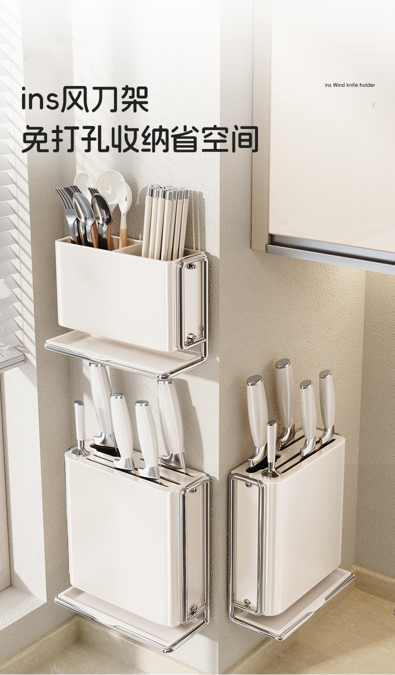 크림 스타일 새로운 스타일의 주방 보관 랙 다기능 벽걸이 형 젓가락 홀더 나이프 조합 마무리 랙