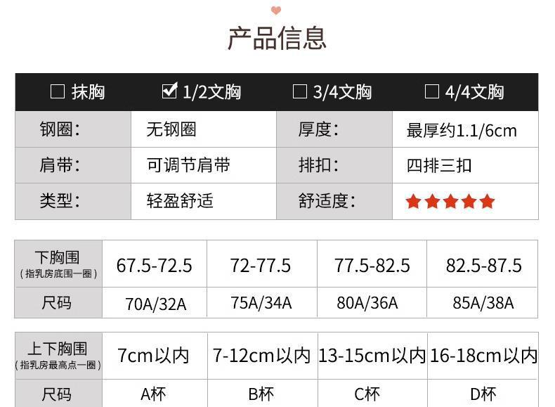 하프 컵 속옷 여자 작은 가슴이 두껍게 추가 확장 Bra Flat Chest aa Cup 비 빈 컵 tracless Bra Large Chest스토어 가기